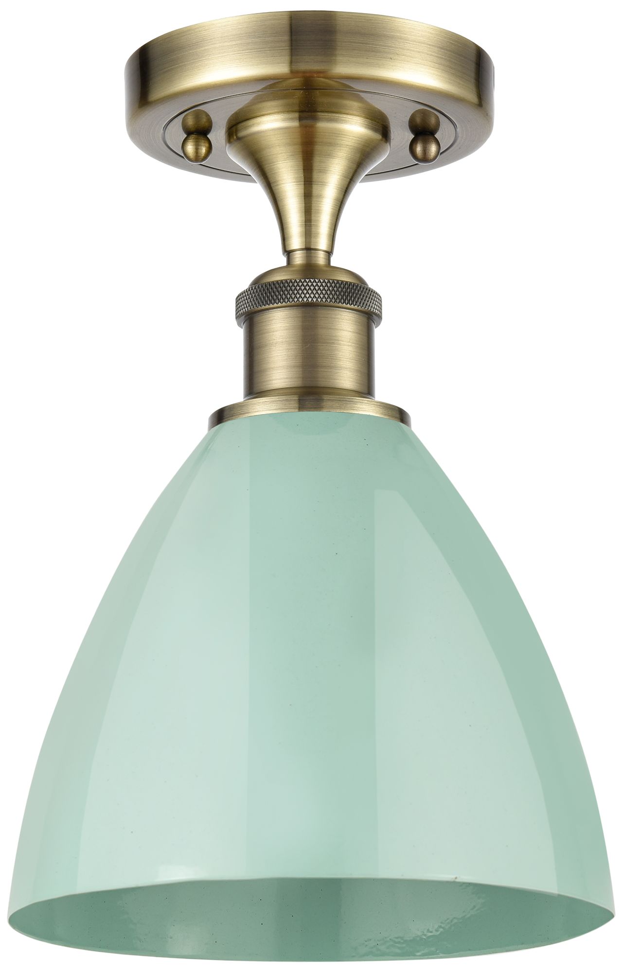 Plymouth Dome 7.5" Wide Antique Brass Semi Flush Mount w/ Seafoam Shad