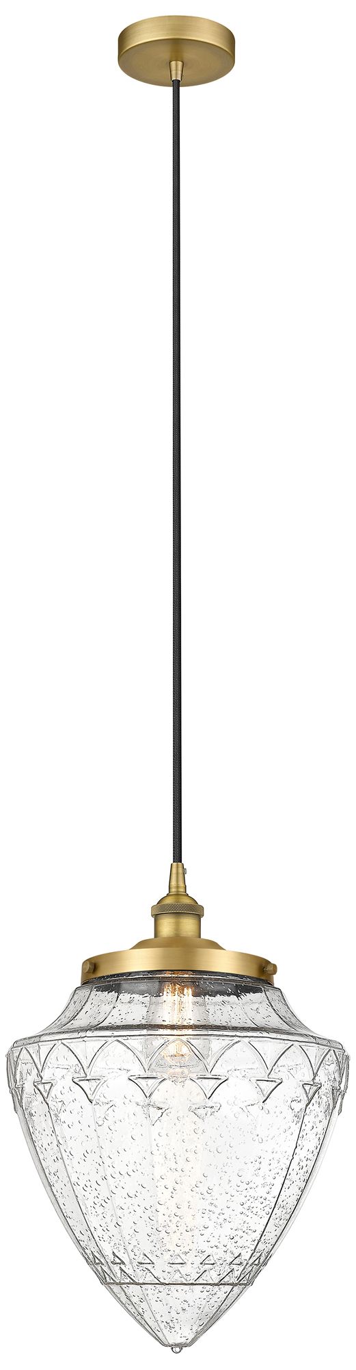 Bullet 12" Wide Brushed Brass Corded Mini Pendant With Seedy Shade