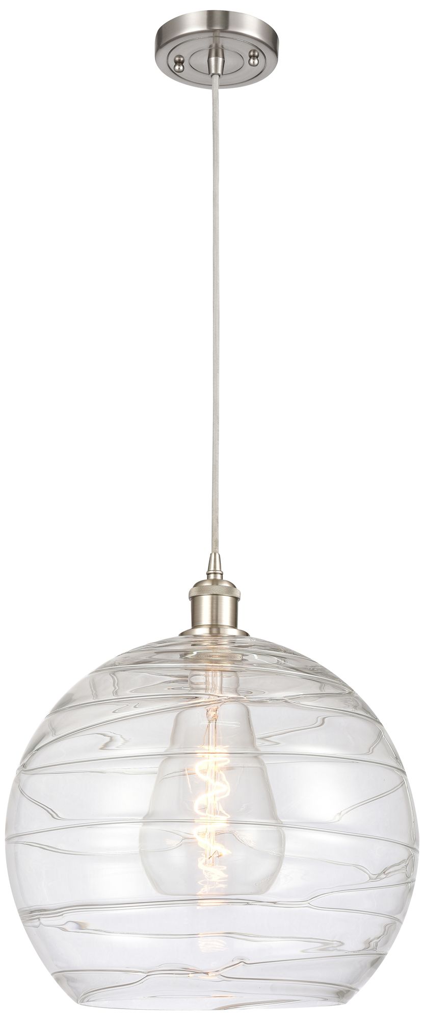 Ballston Athens 14" Brushed Nickel LED Pendant With Clear Deco Swirl S