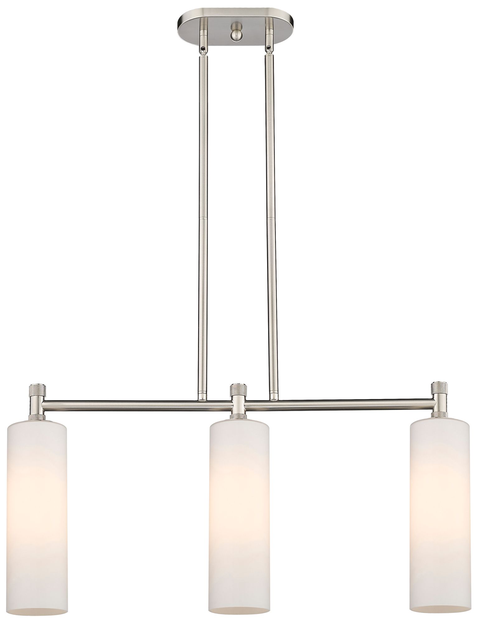 Crown Point 30.5"W 3 Light Satin Nickel Stemmed Island Light w/ White
