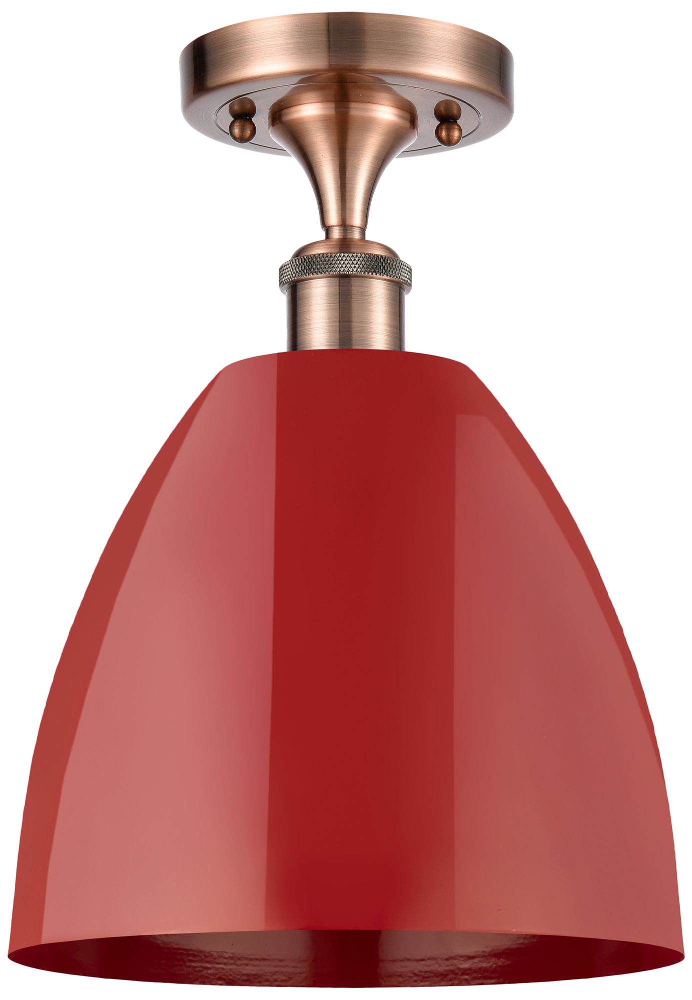 Plymouth Dome 9" Wide Copper Semi Flush Mount w/ Red Shade