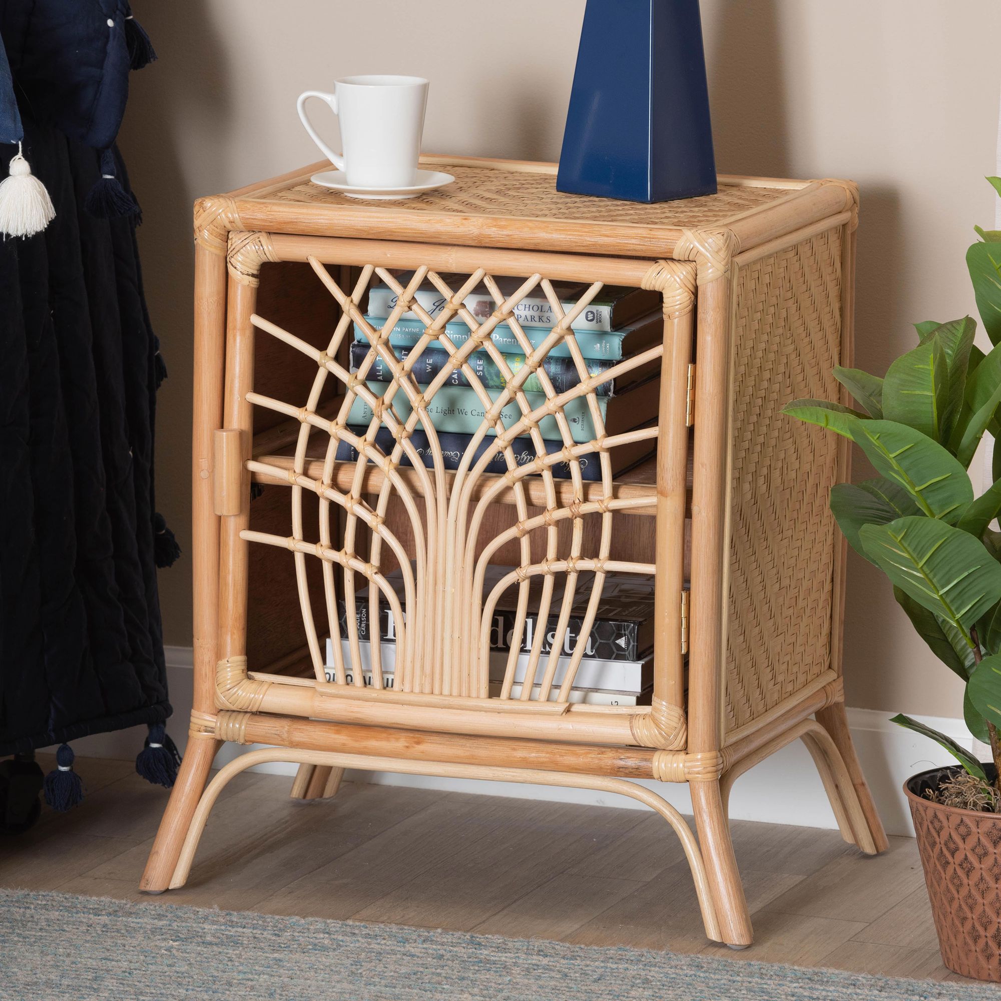Danna 22" Wide Natural Brown Rattan 1-Door Nightstand