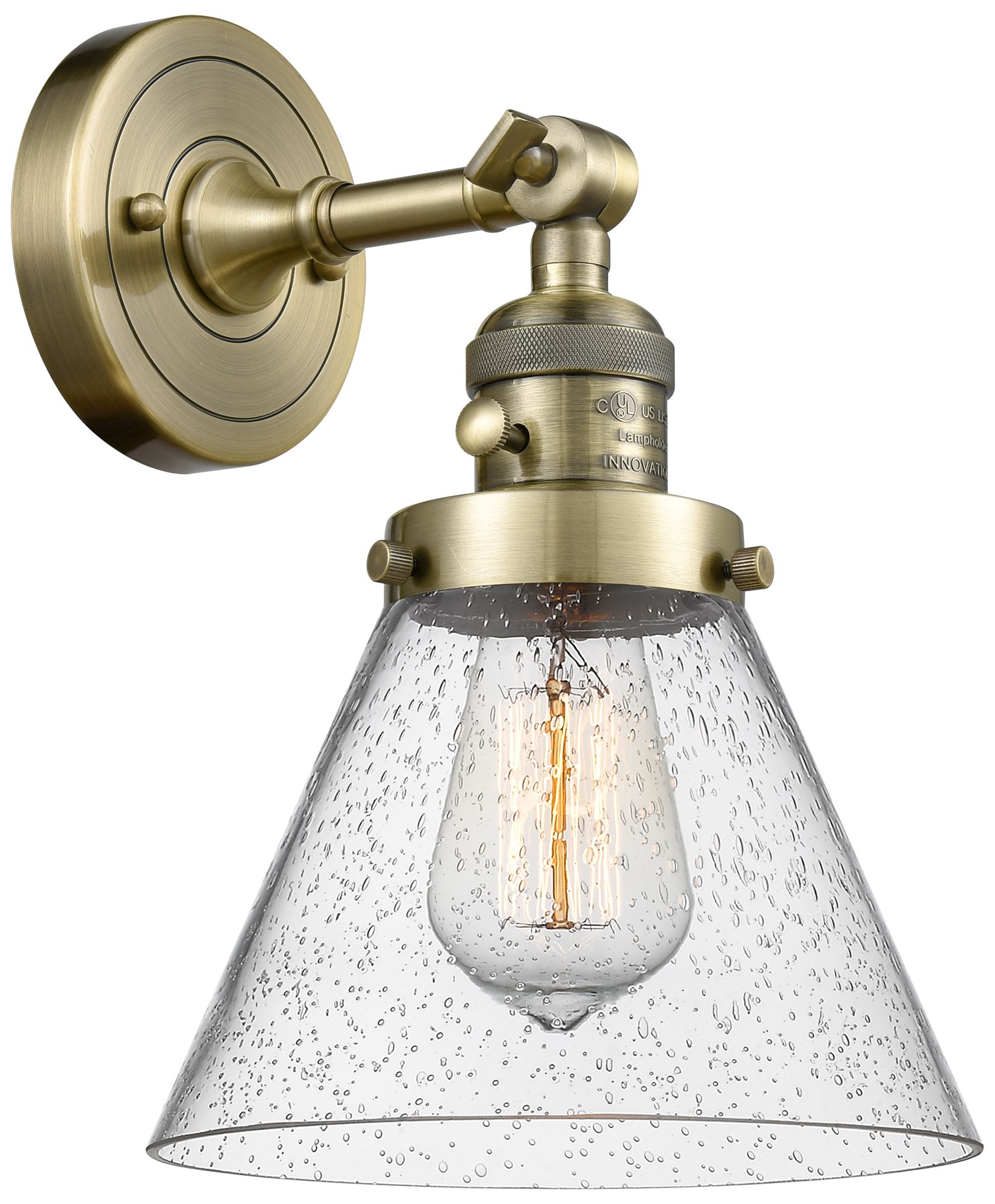 Cone 8" Antique Brass Sconce w/ Seedy Shade