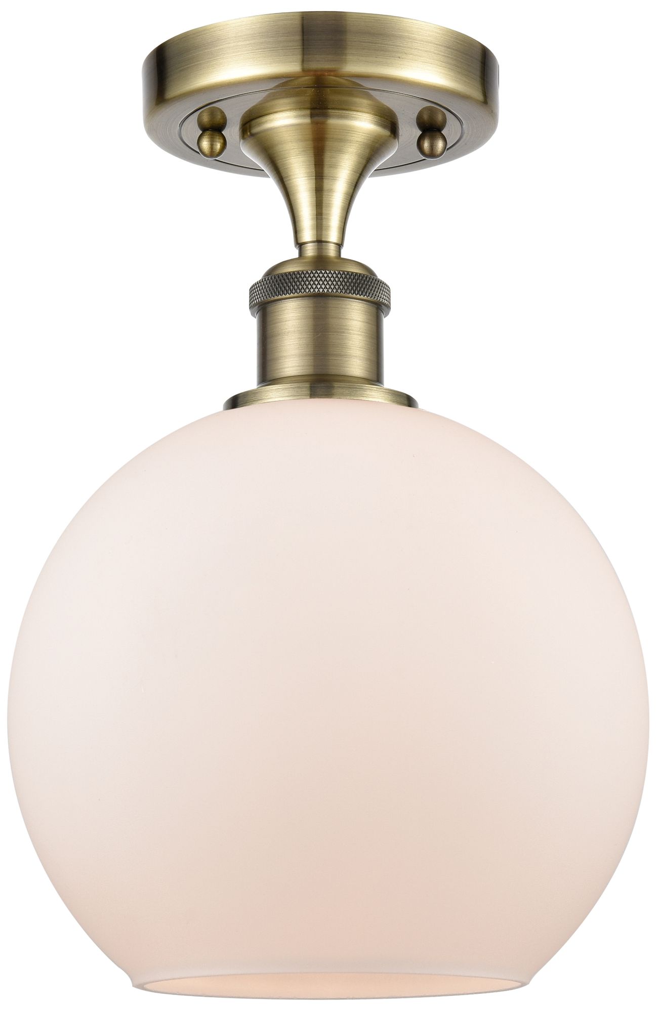 Ballston Athens 8" LED Semi-Flush Mount - Antique Brass - Matte White