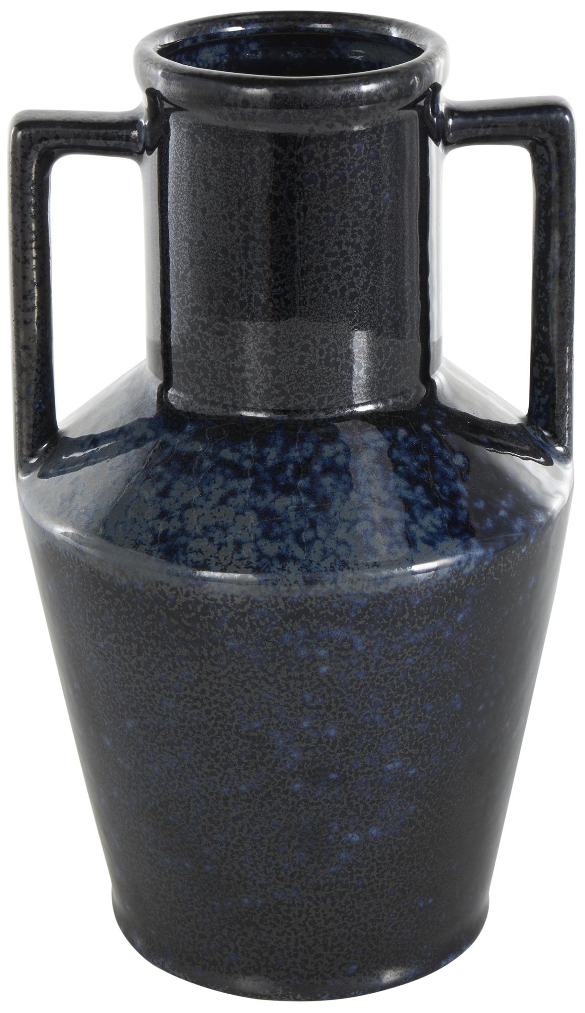 Dark Blue Ceramic Contemporary Vase, 6" x 6" x 11"