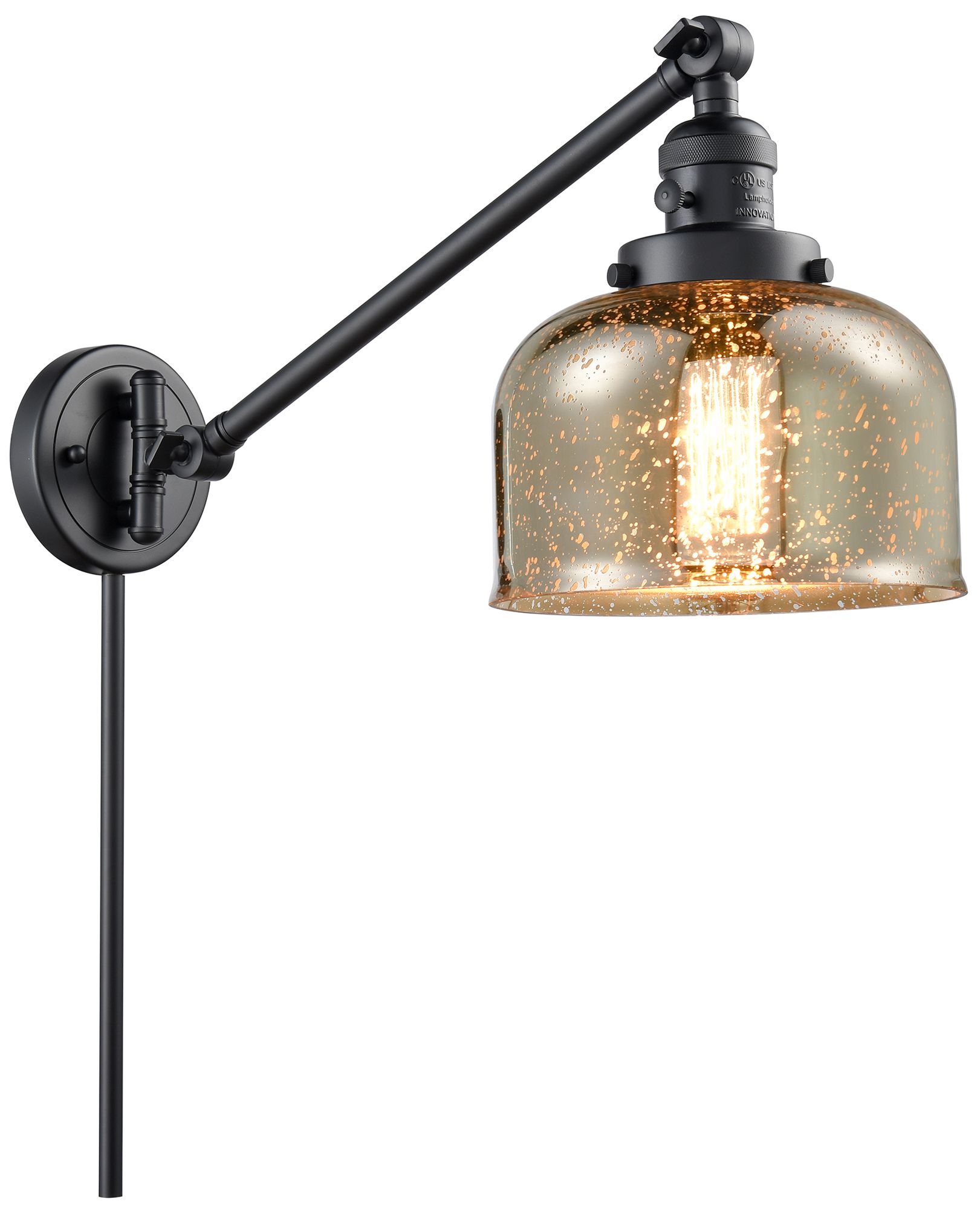 Franklin Restoration Bell 8" Matte Black Swing Arm w/ Mercury Shade