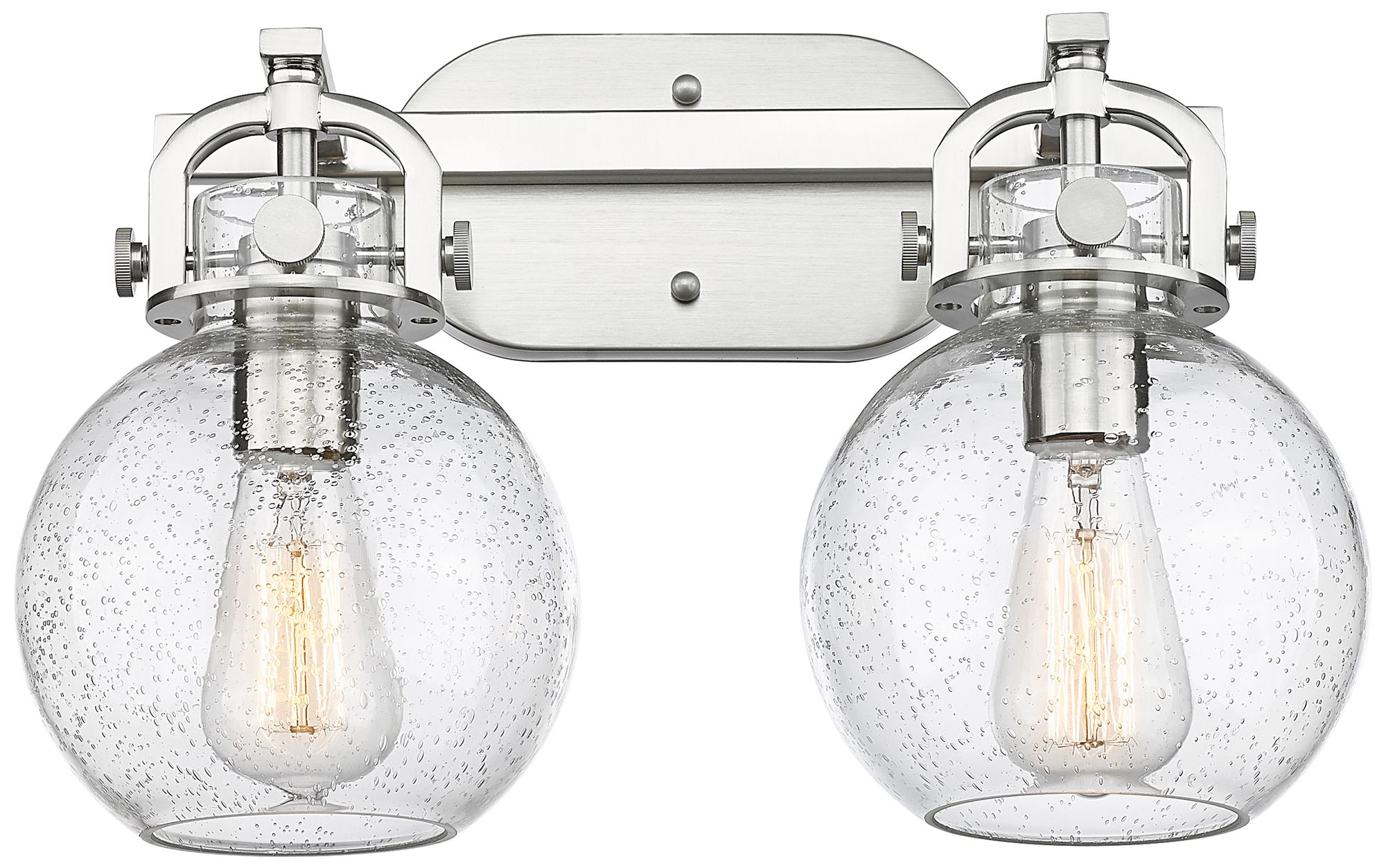 Newton Sphere 17" Wide 2 Light Satin Nickel Bath Light With Seedy Shad