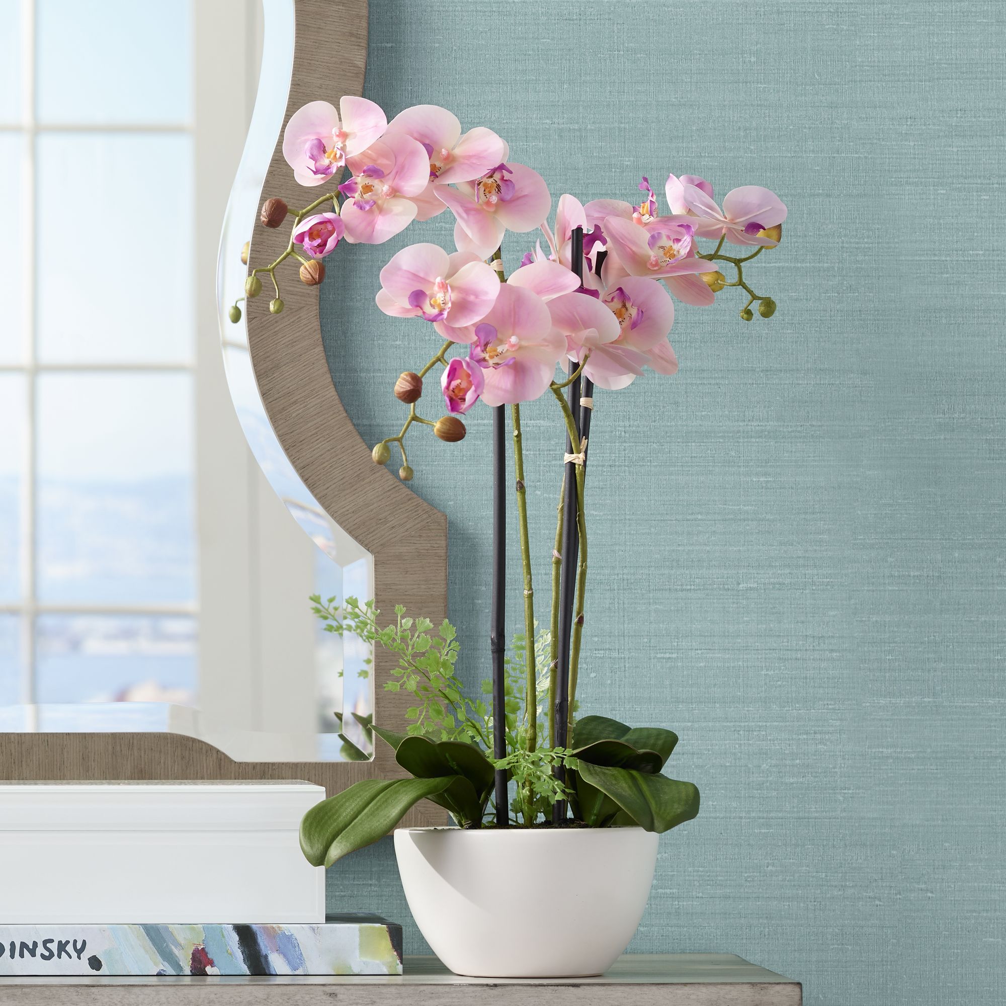 Real Touch Pink Orchid 22" High Faux Flowers in White Pot