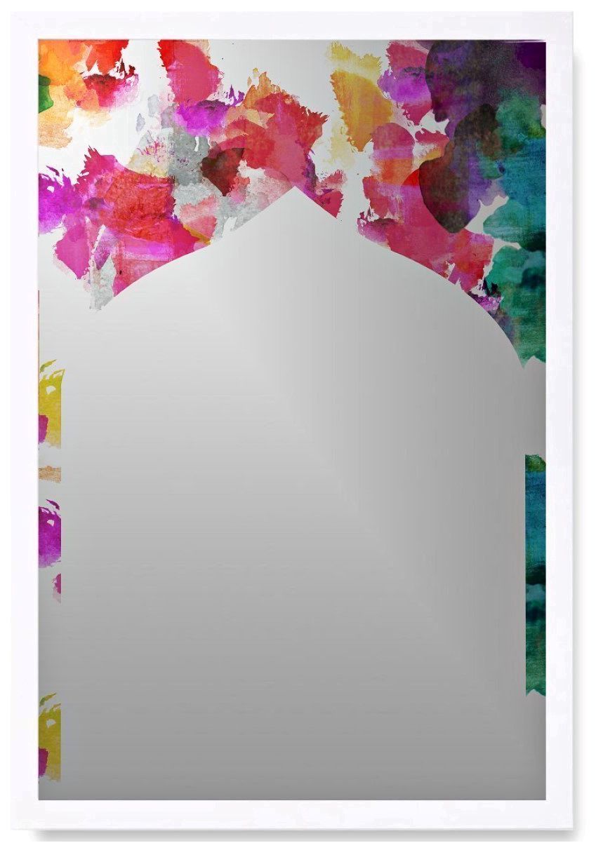 Floral Inks White Wood 18" x 26" Wall Mirror Art