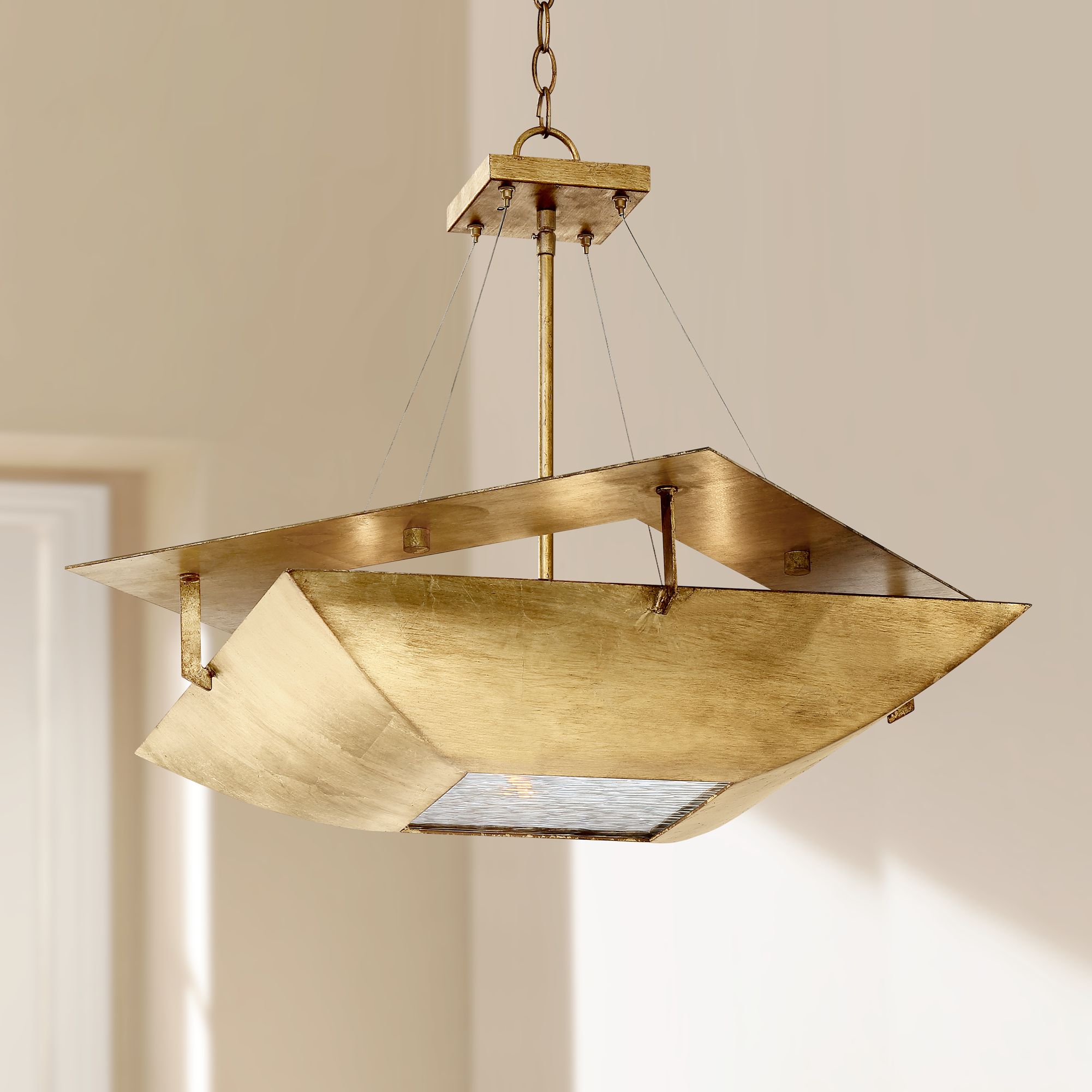 Squared Up 28 1/4" Wide Gold Leaf 4-Light Chandelier
