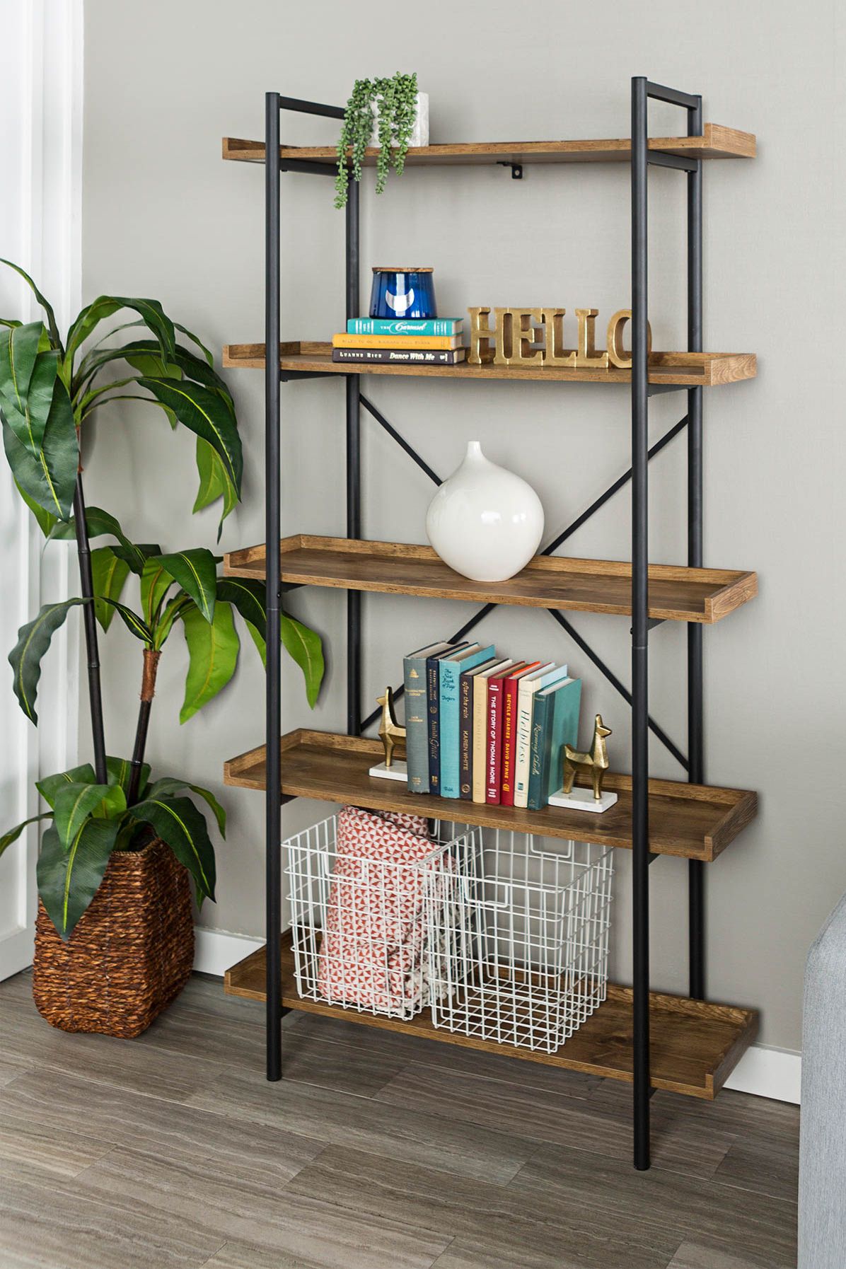 Urban Pipe 68" High Brown Barnwood 5-Shelf Open Bookshelf