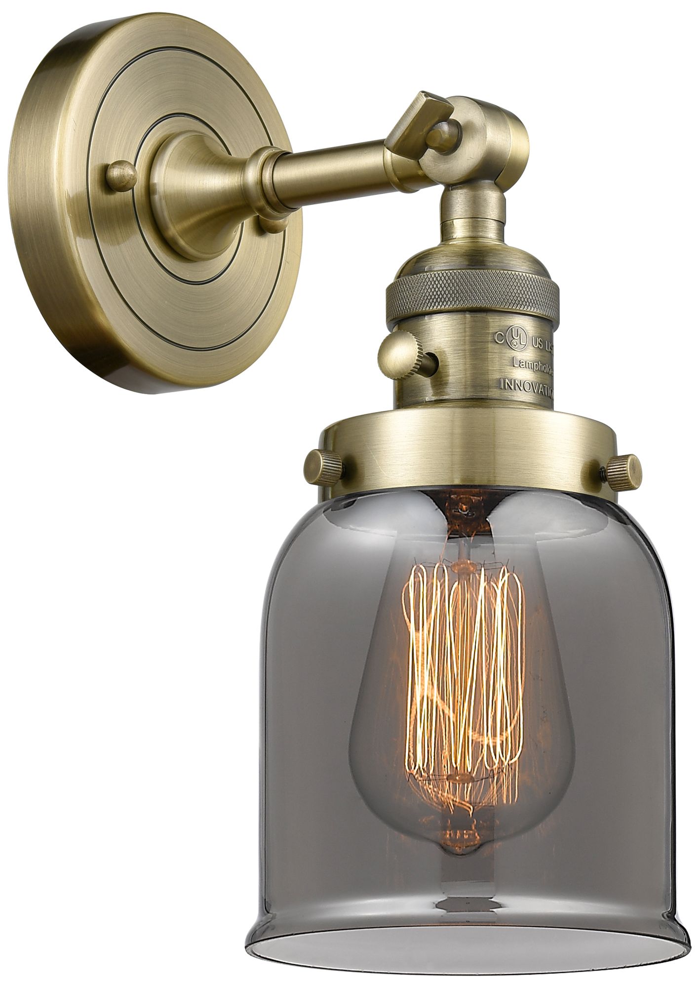 Bell 5" Antique Brass Sconce w/ Plated Smoke Shade