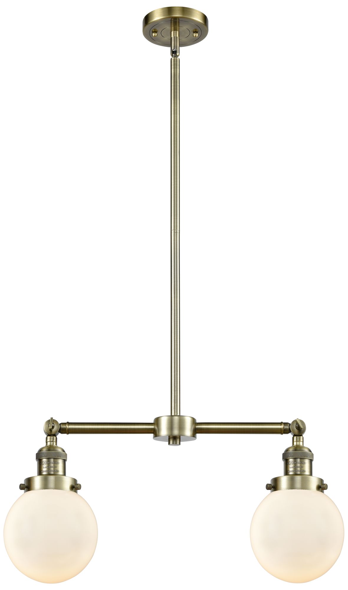 Beacon - 2 Light 23" Island Light - Antique Brass - Matte White Shade
