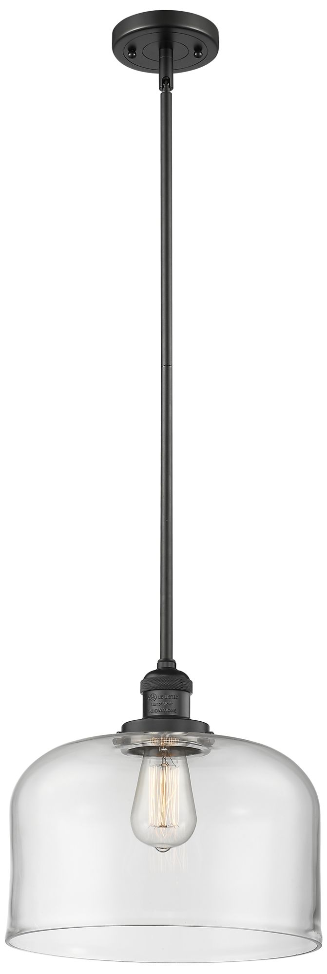 Franklin Restoration Bell 13" Black LED Stem Hung Pendant w/ Clear Sha