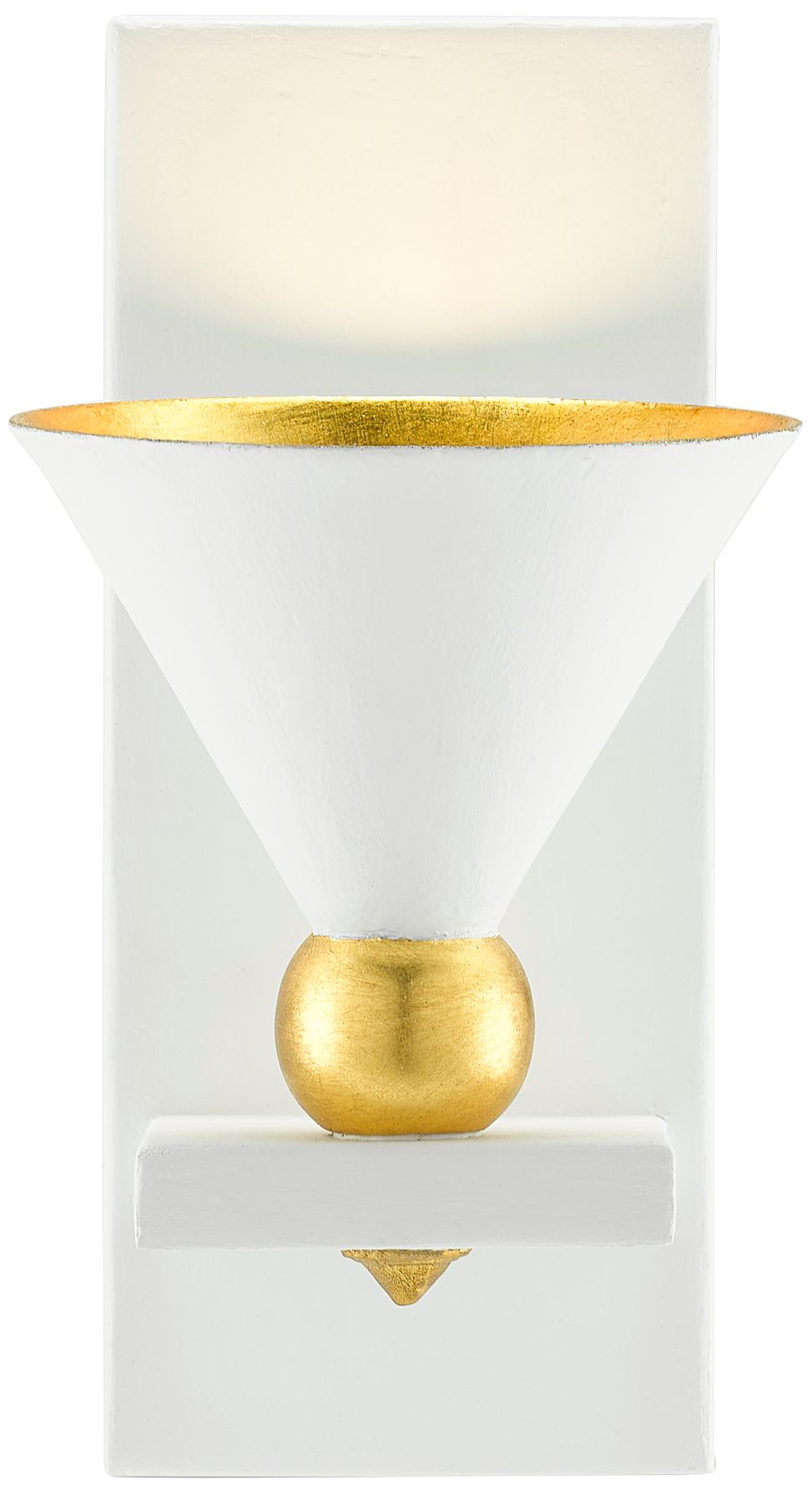 Moderne 12" High Gesso White and Gold Leaf Wall Sconce
