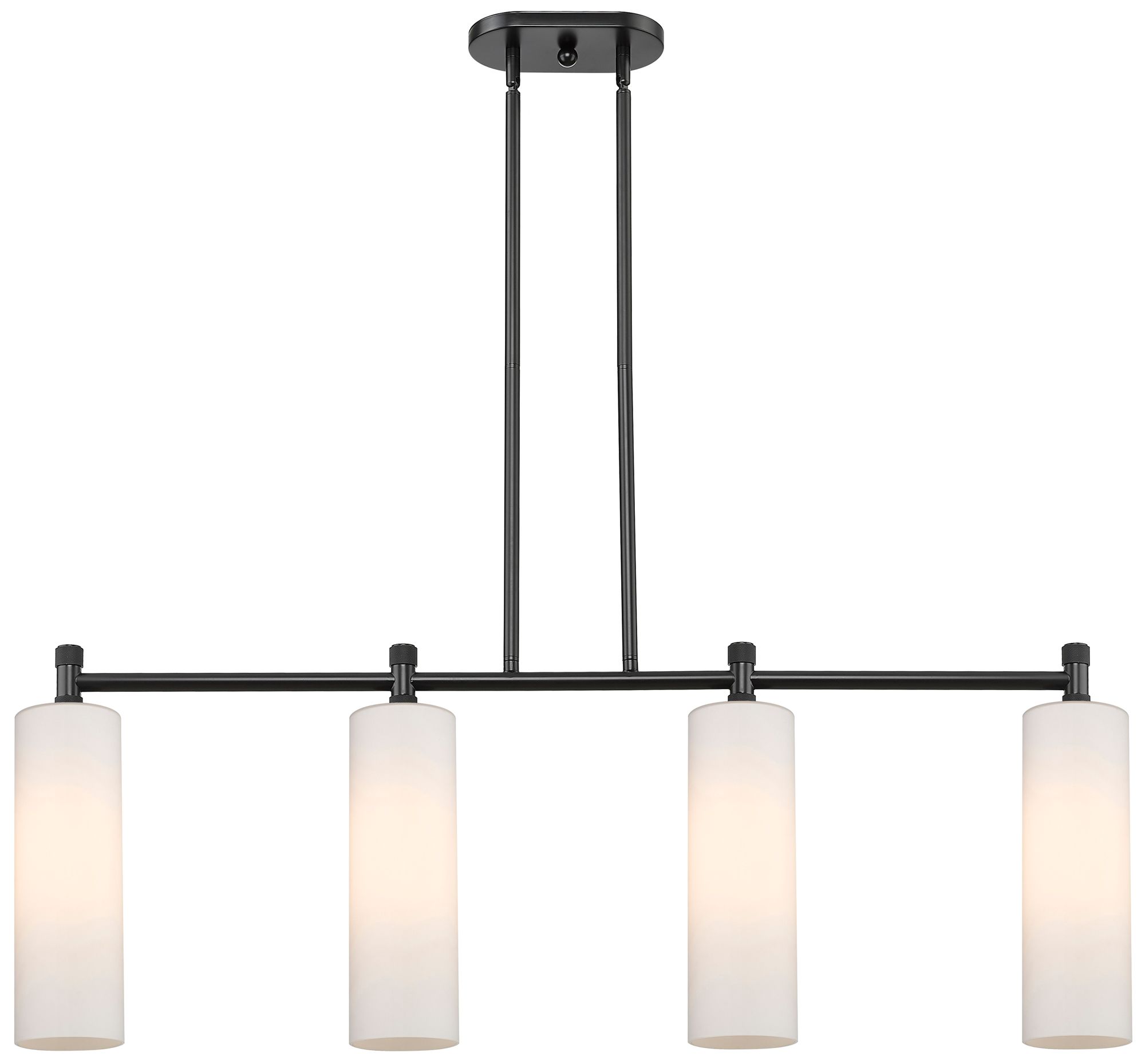 Crown Point 43.75"W 4 Light Black Stemmed Island Light w/ White Shade