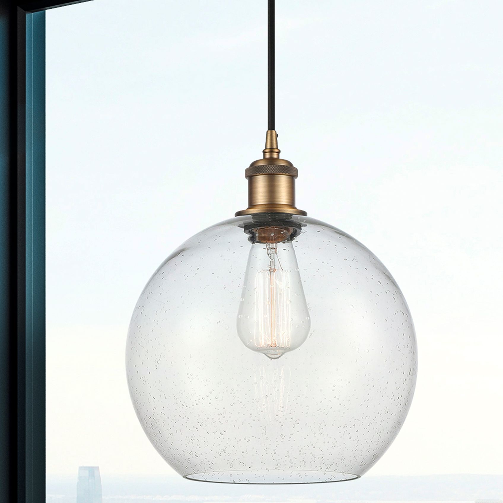 Ballston Athens 10" Brushed Brass Cord Hung Mini Pendant w/ Seedy Shad