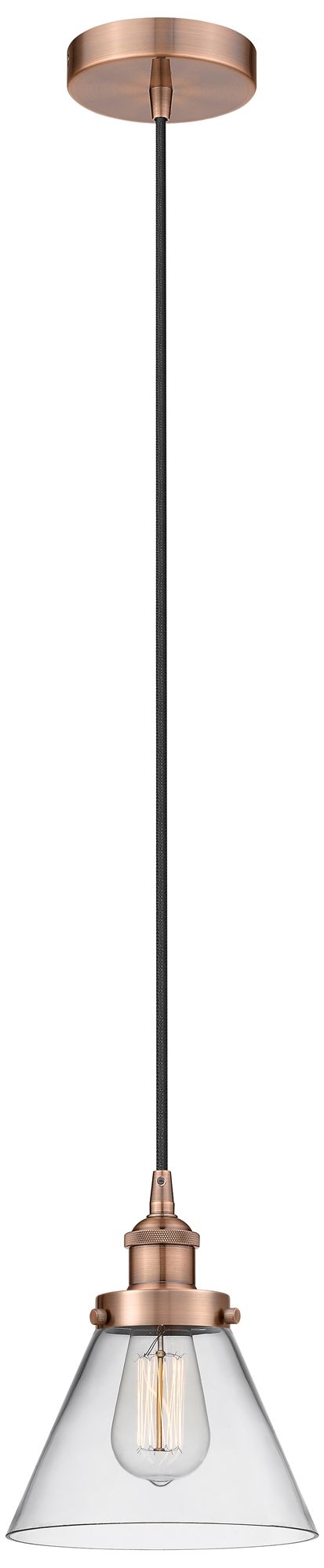 Cone 8" Antique Copper Mini Pendant w/ Clear Shade