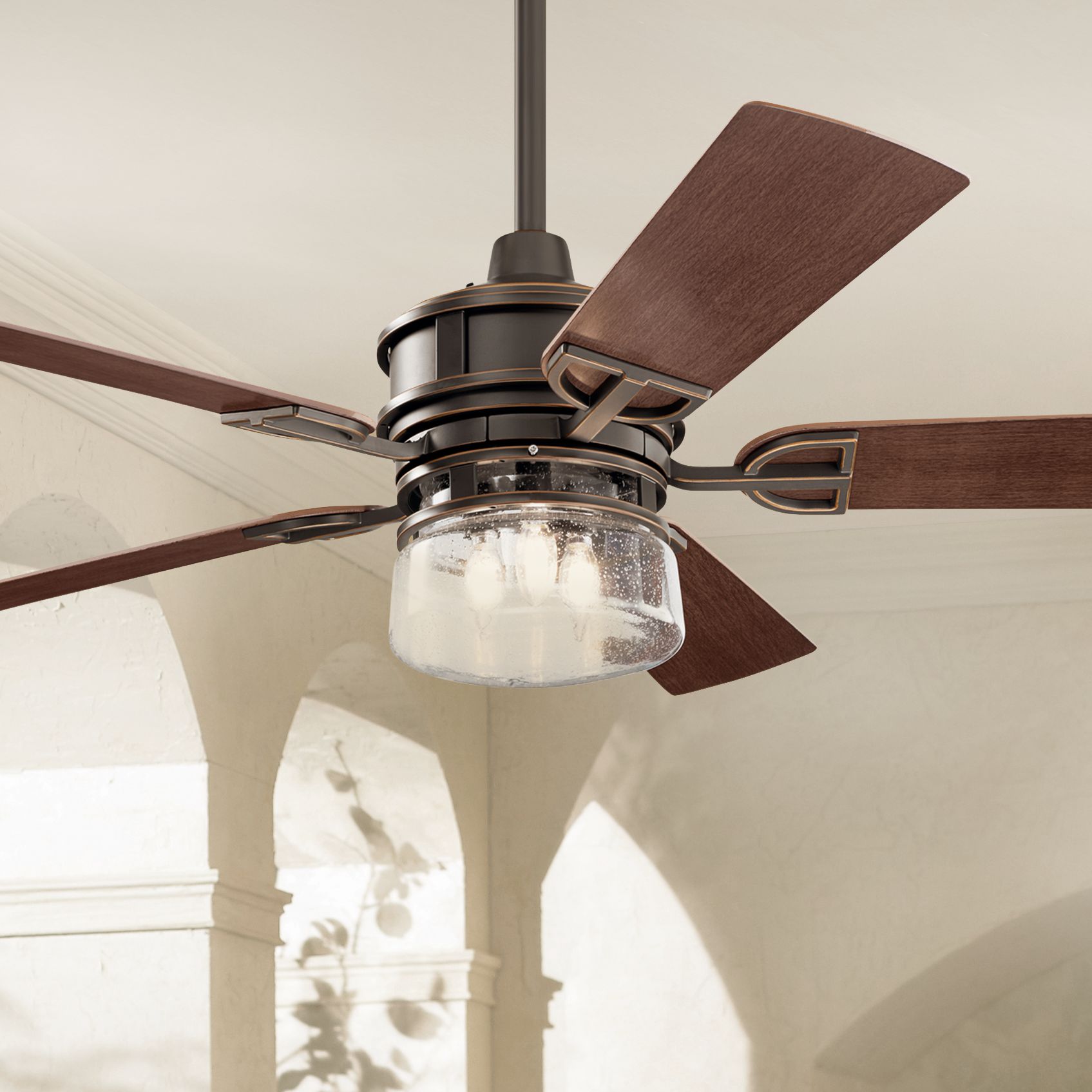 52" Kichler Lyndon Bronze LED Wet Rated Ceiling Fan with Wall Control