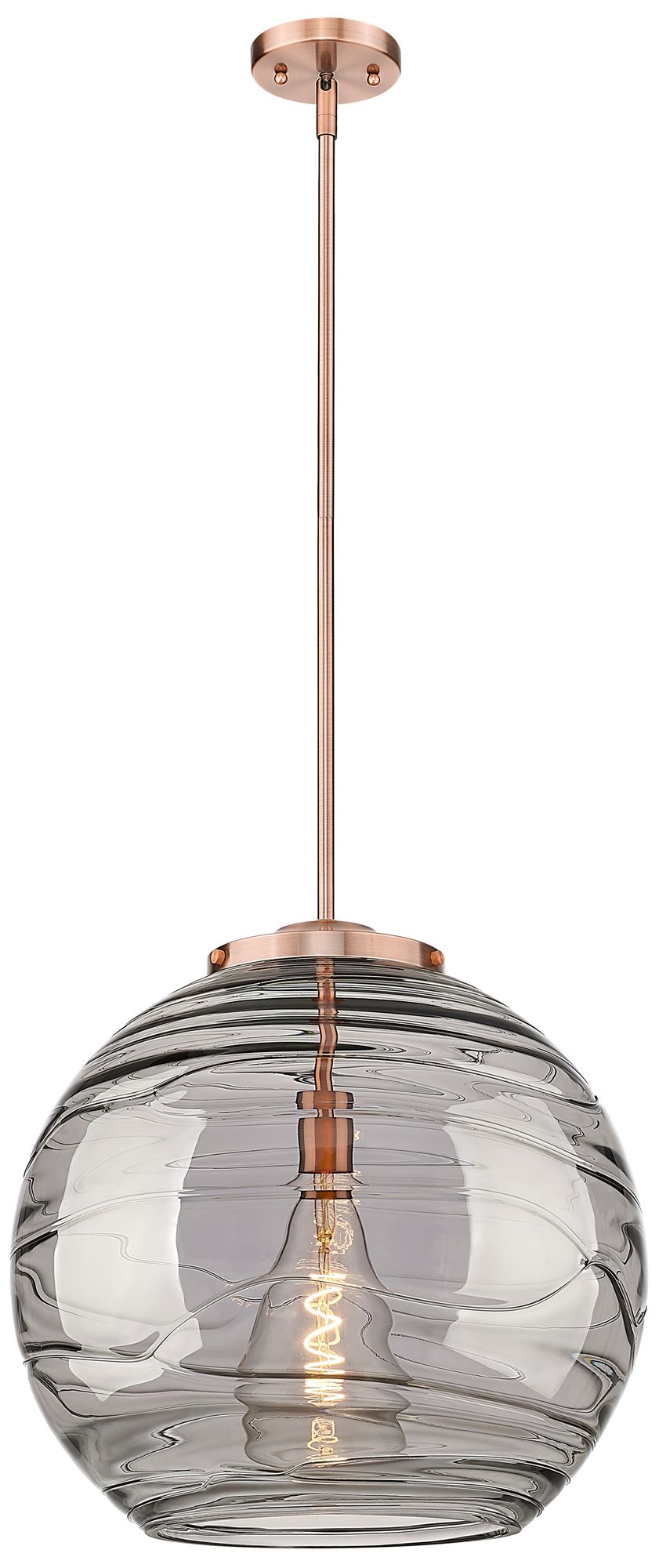 Franklin Athens 17.88"W Copper Stemmed Pendant w/ Smoke Swirl Shade