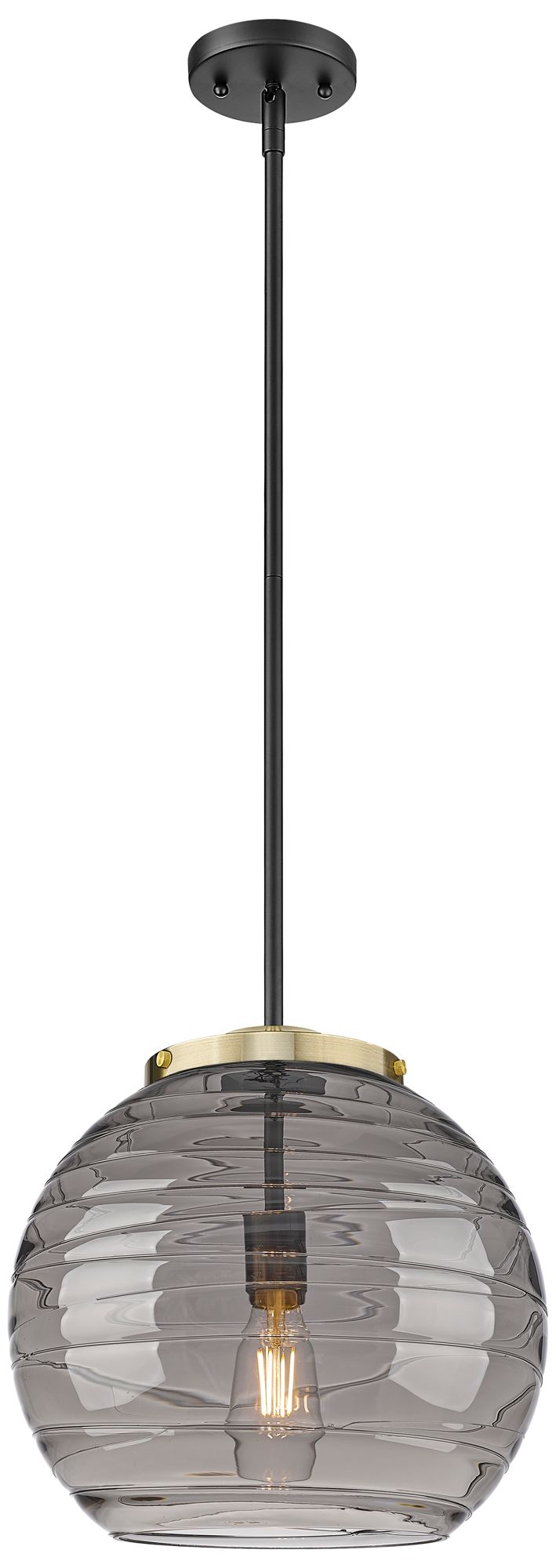 Franklin Athens 13.75"W Black Brass Stemmed Pendant w/ Smoke Swirl Sha