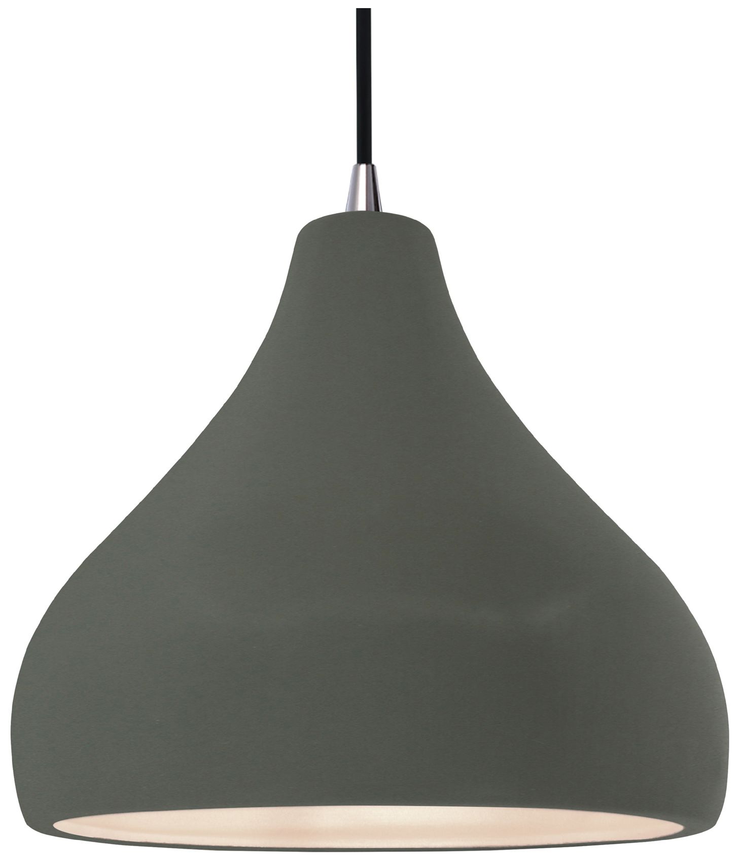 13.5"W Pewter Green Frame Nickel Large Droplet Black Cord LED Pendant