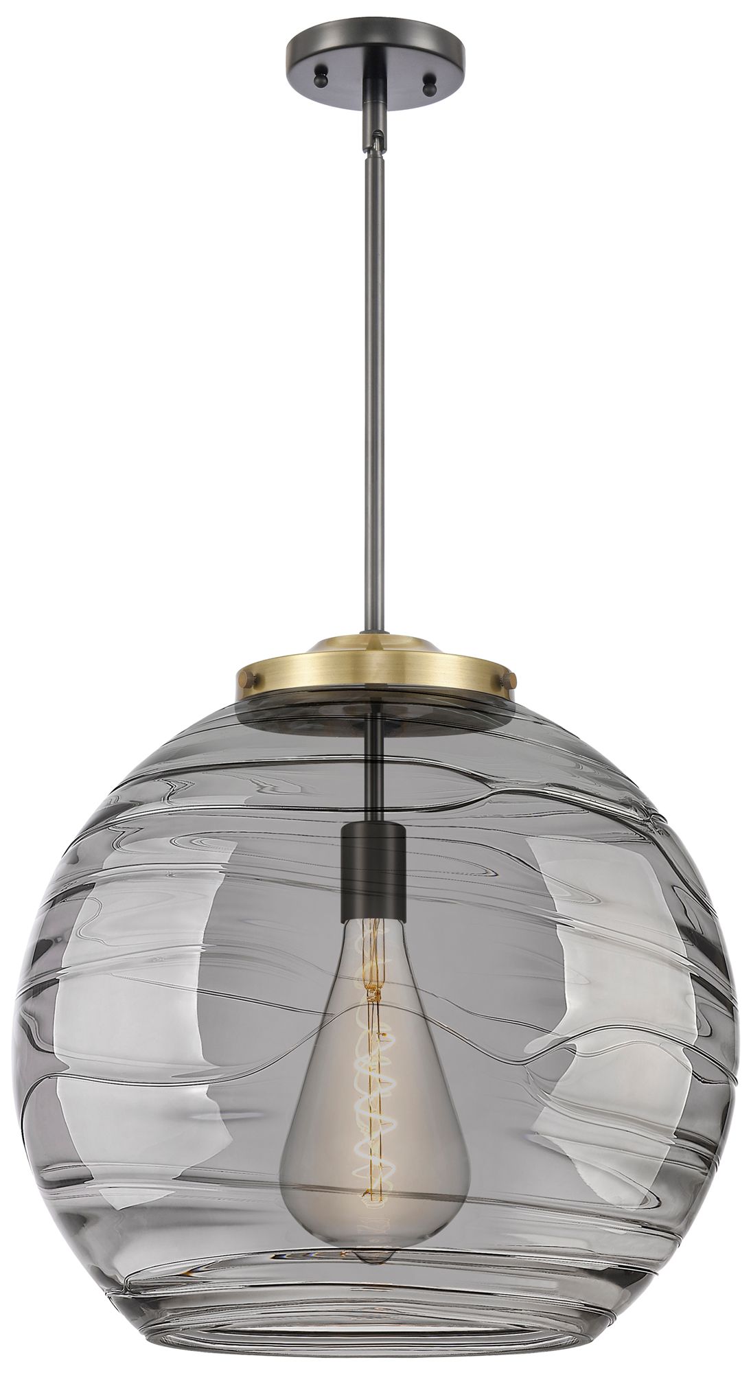 Franklin Athens 17.88"W Black Brass Stemmed Pendant w/ Smoke Swirl Sha