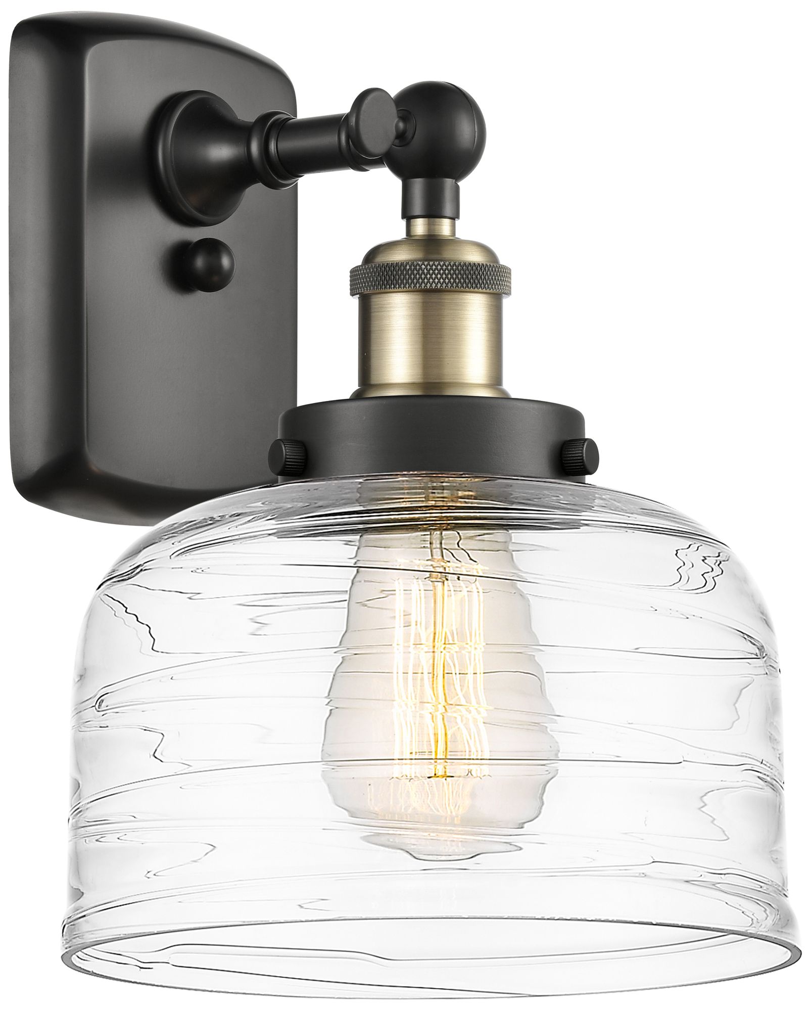 Ballston Urban Bell 8" Incandescent Sconce - Black Brass - Swirl Shade