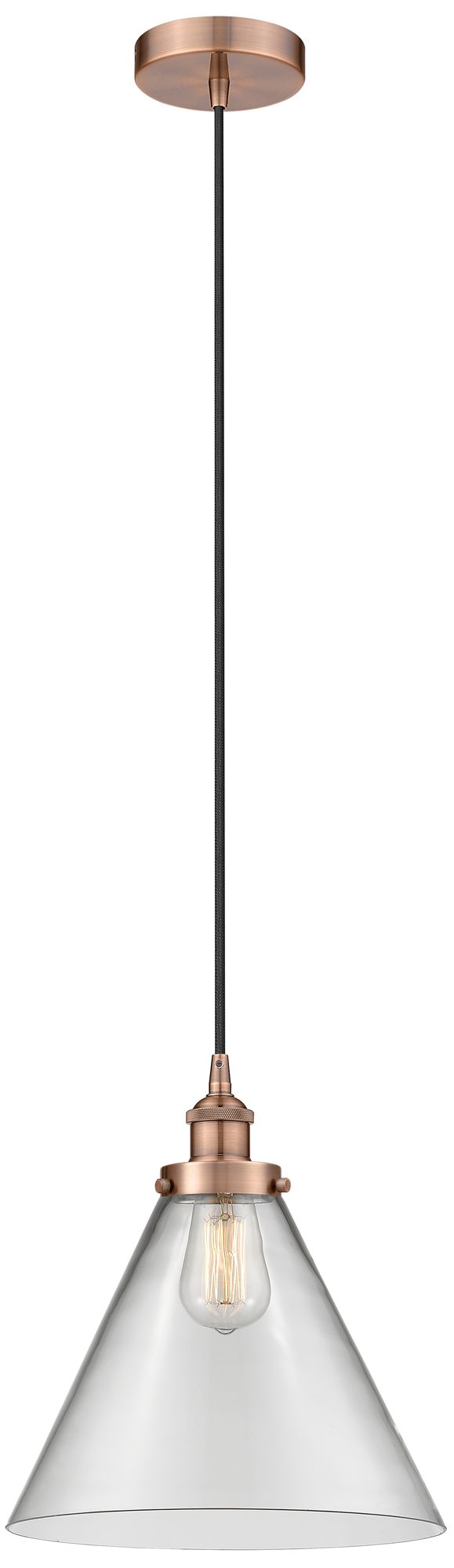 Cone 12" Antique Copper Mini Pendant w/ Clear Shade