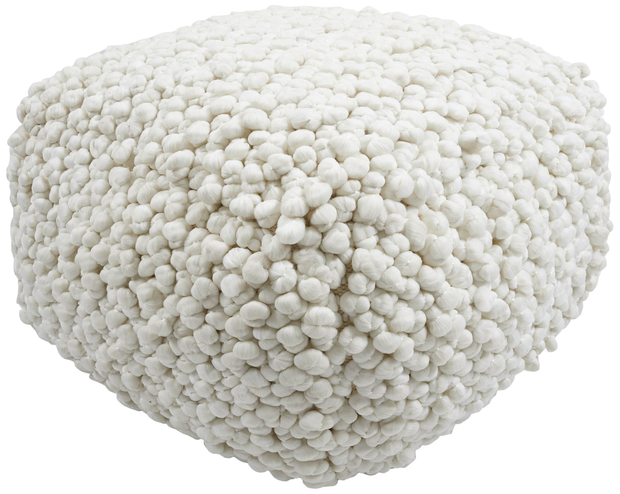 TOV Cathy 24" Wide Cream Woven Looped Fabric Pouf Ottoman