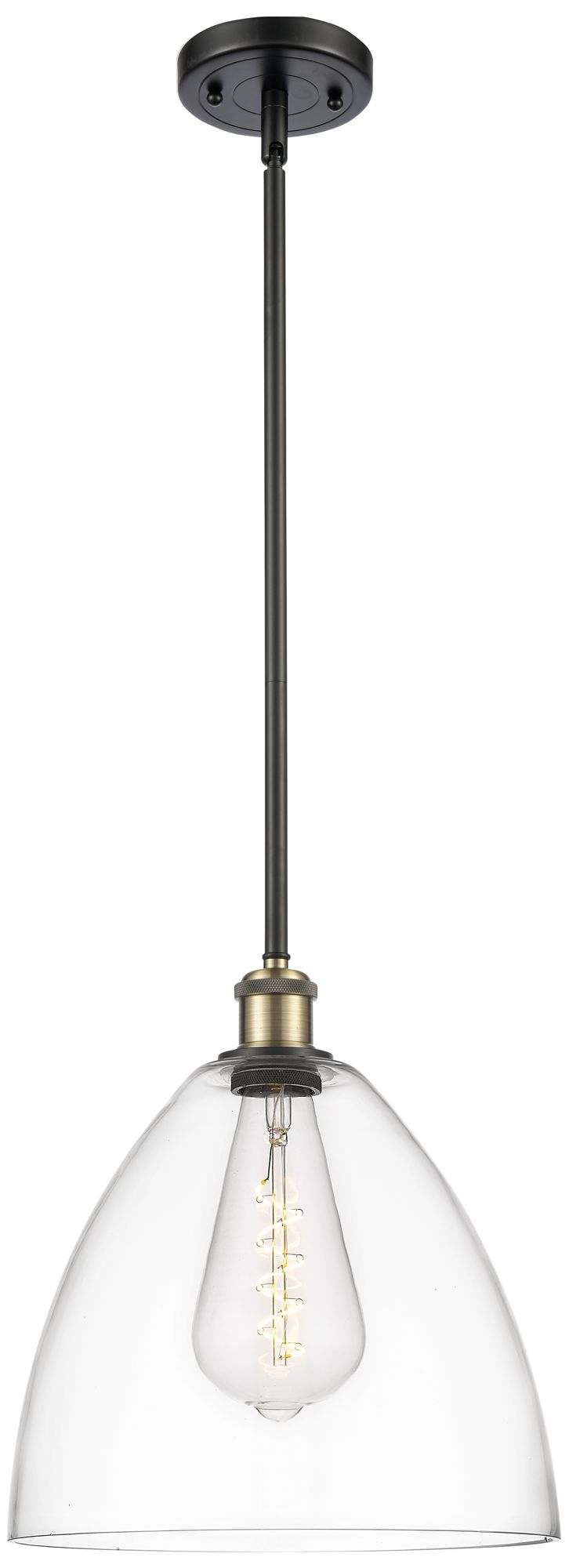 Bristol Glass 12" Mini Pendant - Black Antique Brass - Clear Shade