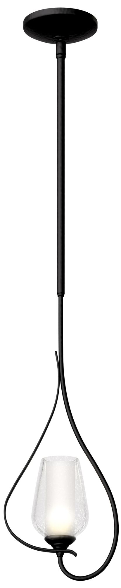 Flora 7.6"W Black Up Light Mini-Pendant With Opal and Seeded Glass Sha