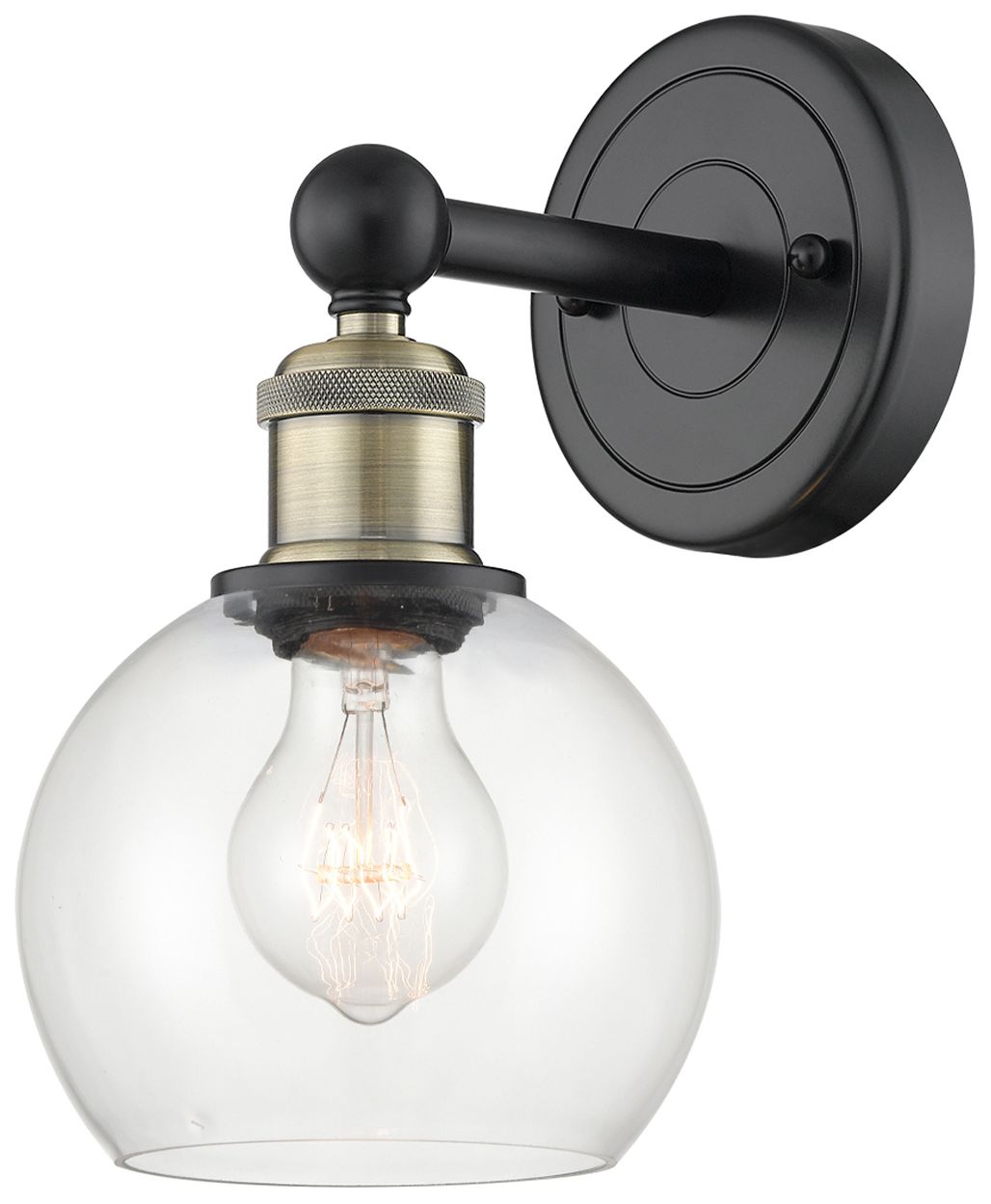 Edison Athens 10.63"High Black Antique Brass Sconce With Clear Shade