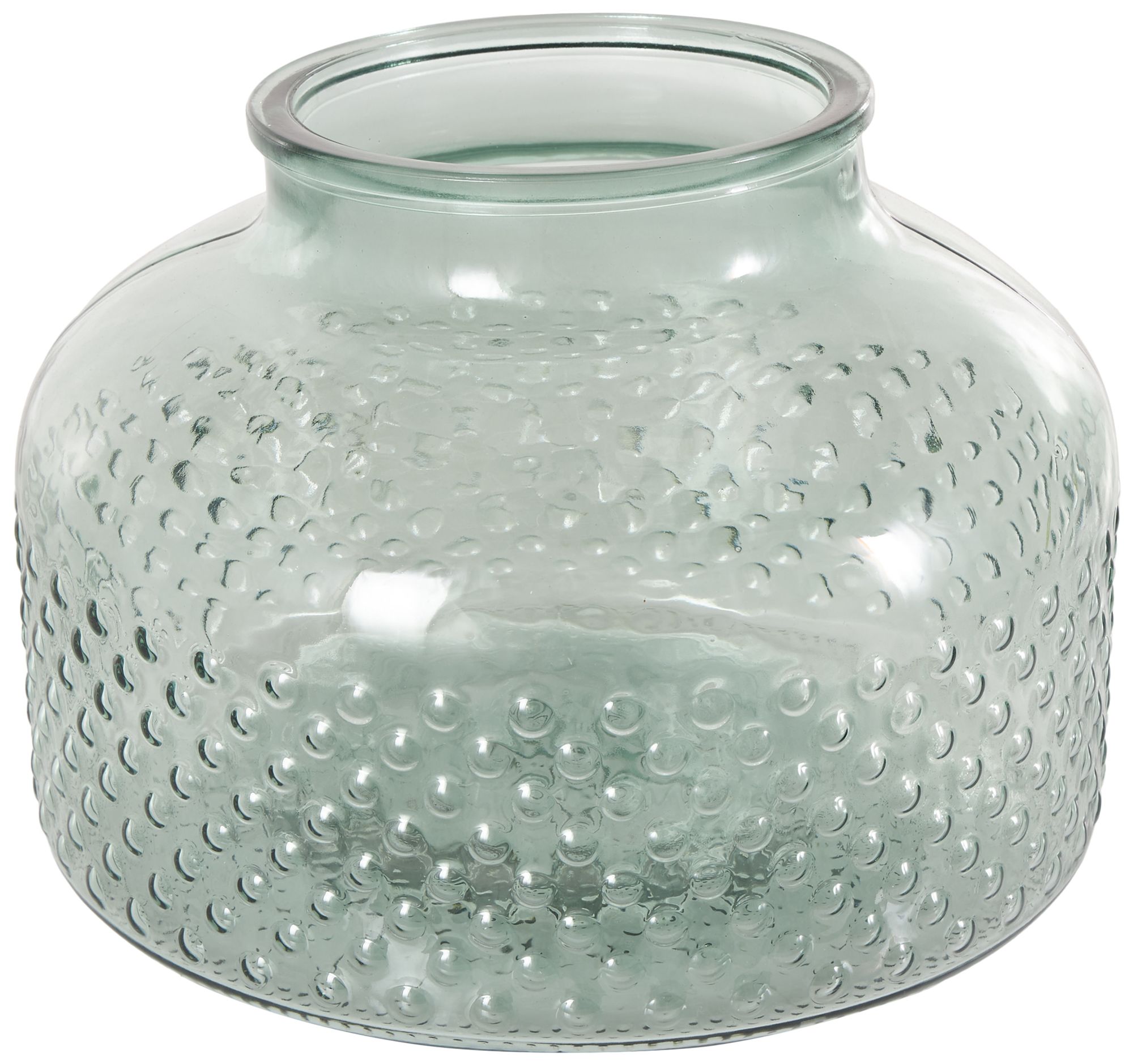 Green Glass Coastal Vase, 12" x 12" x 9"