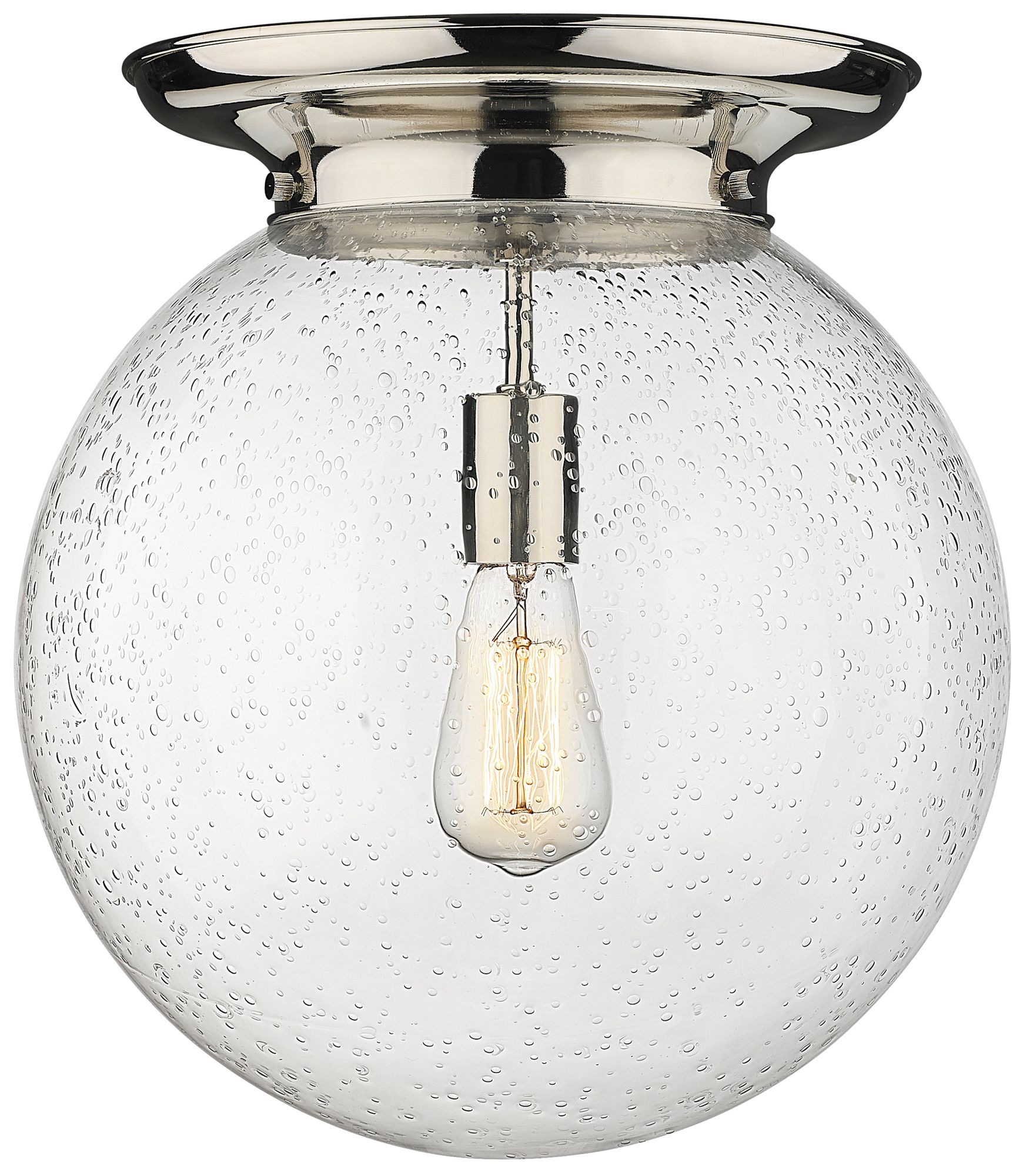 Beacon 14" Wide Polished Nickel Flush Mount With Seedy Glass Shade