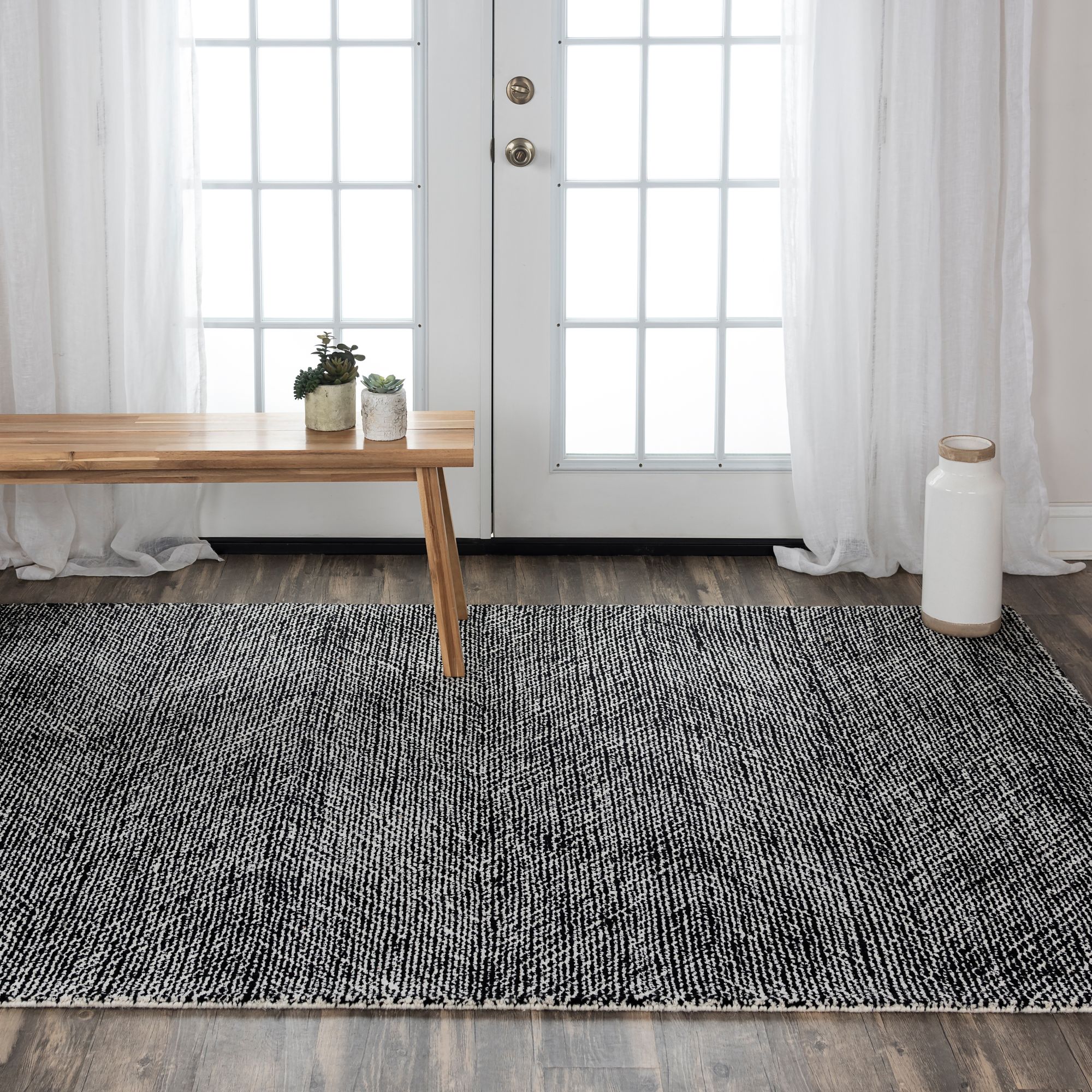 Etchings ETC101 5'x7'6" Black Geometric Wool Area Rug