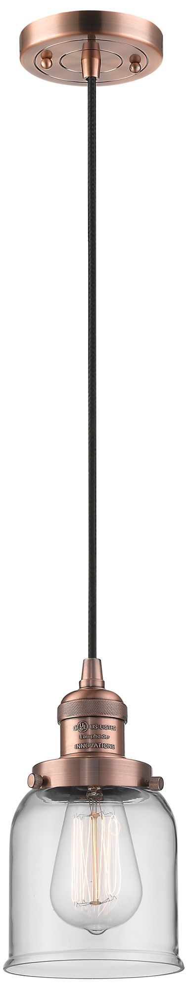 Franklin Restoration Bell 5" Copper Corded Mini Pendant w/ Clear Shade