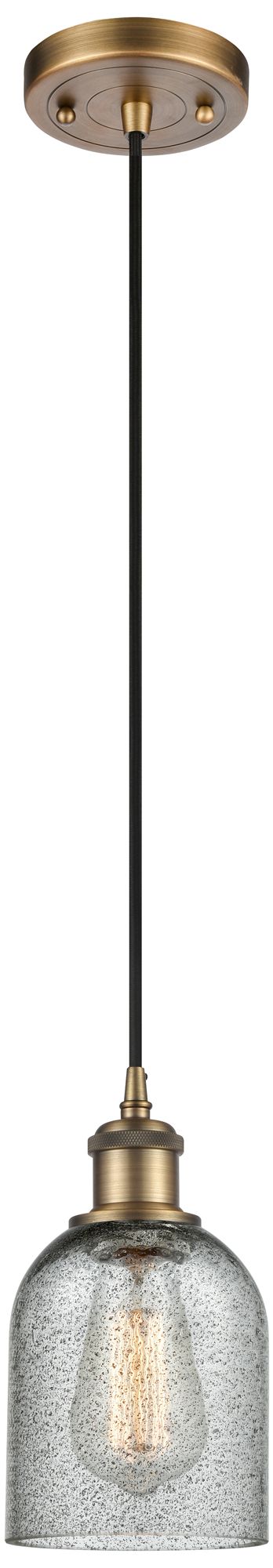 Caledonia 5" Brushed Brass Cord Hung Mini Pendant w/ Charcoal Shade