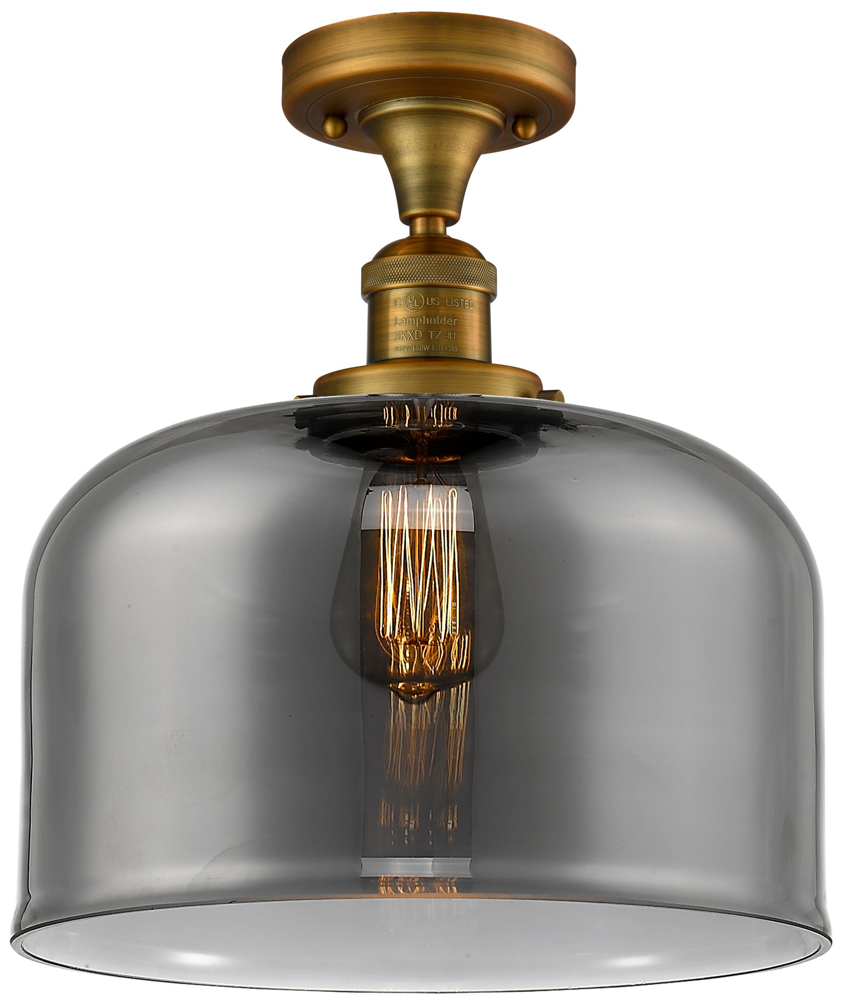 Bell 12" Wide Brushed Brass Semi Flush Mount w/ Plated Smoke Shade