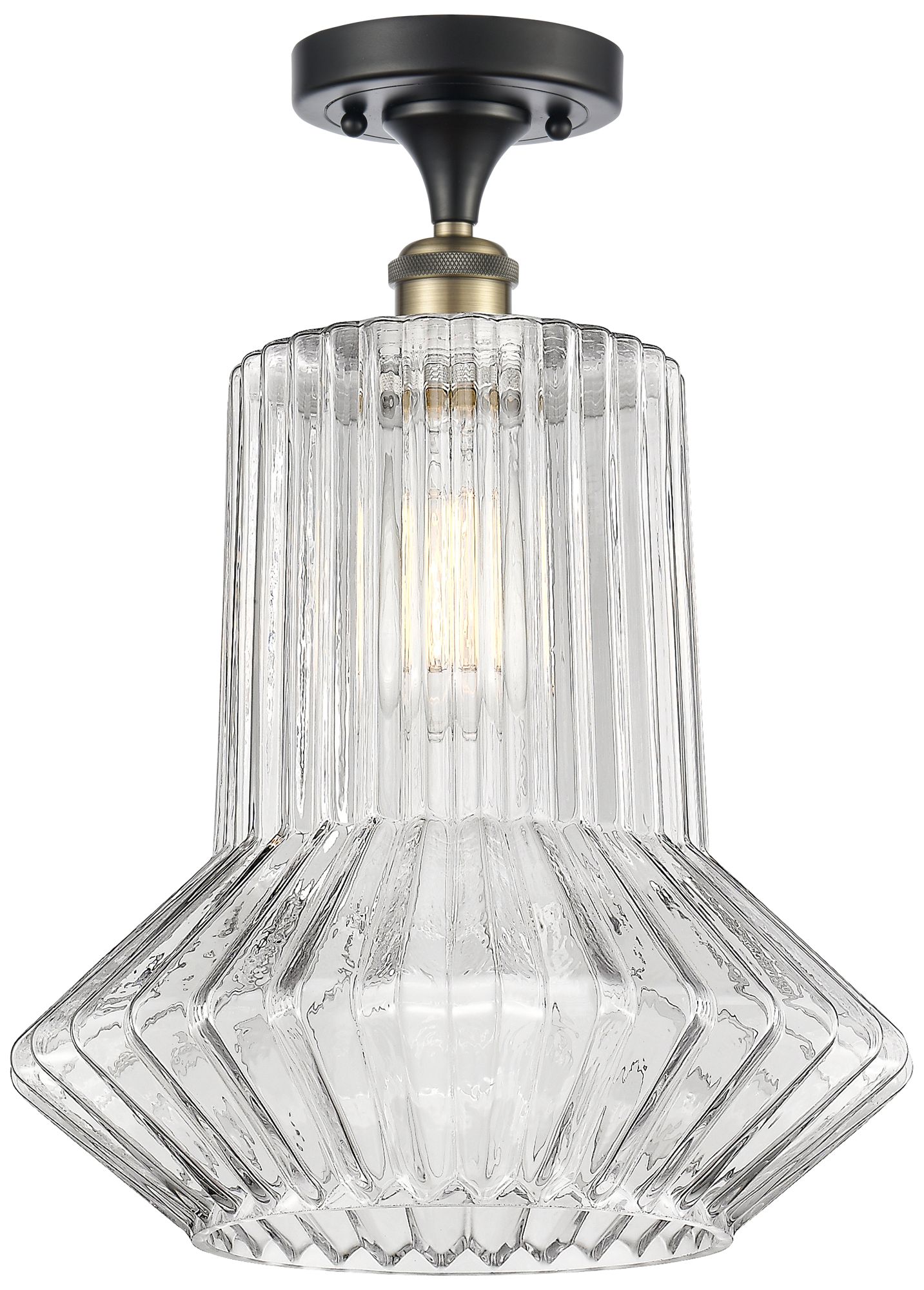 Springwater 12"W Black Brass Semi Flush Mount w/ Clear Spiral Fluted S