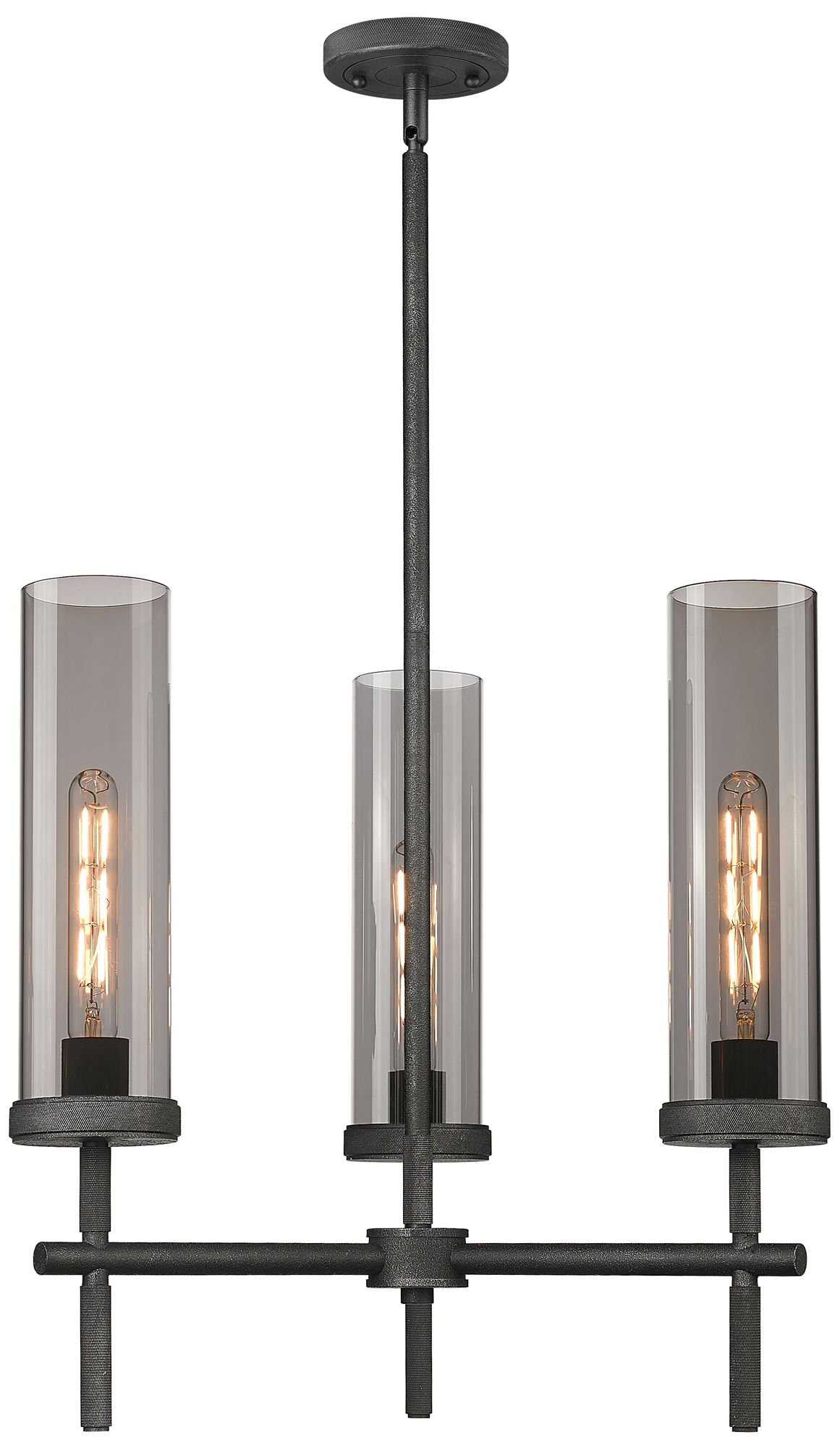 Lincoln 21.25" Wide 3 Light Stem Hung Weathered Zinc Pendant W/ Smoke