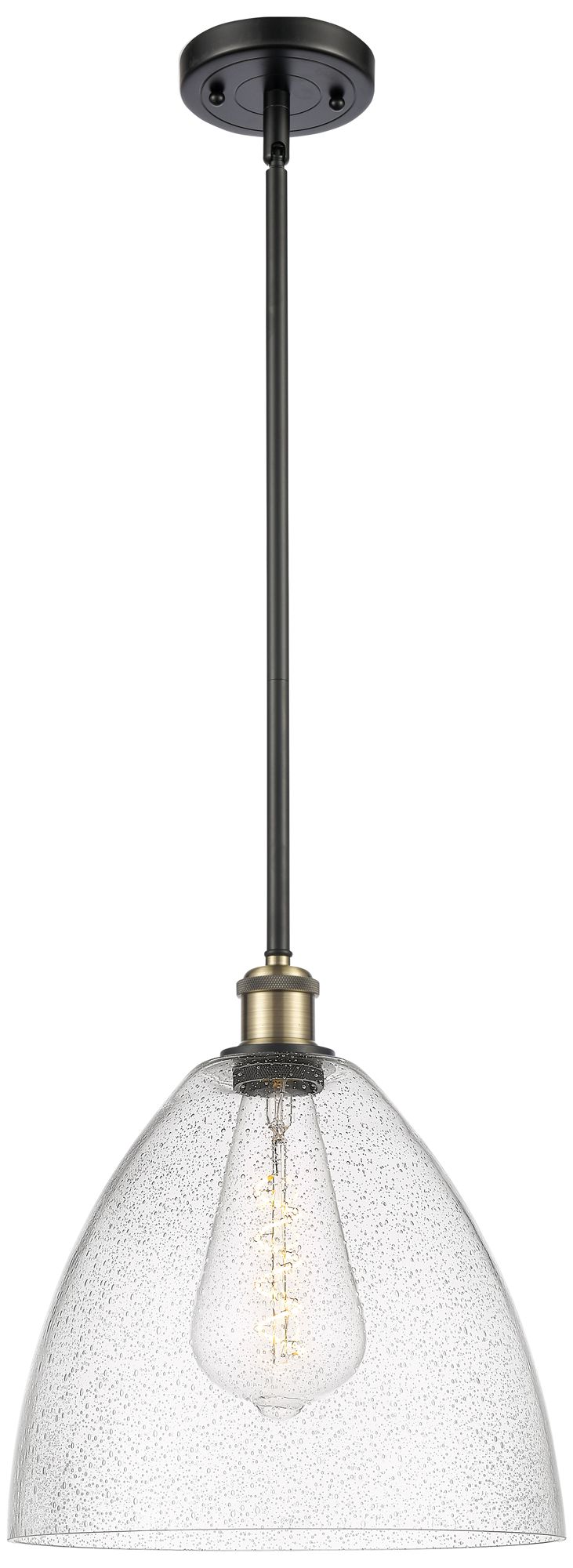 Bristol Glass 12" Mini Pendant - Black Antique Brass - Seedy Shade