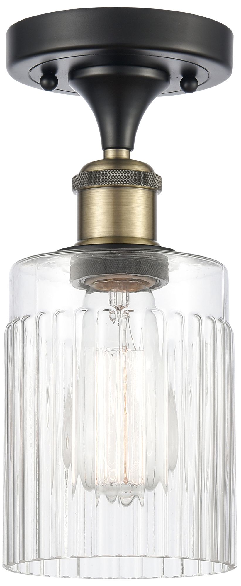 Hadley 4.5" Wide Black Brass Semi Flush Mount w/ Clear Shade