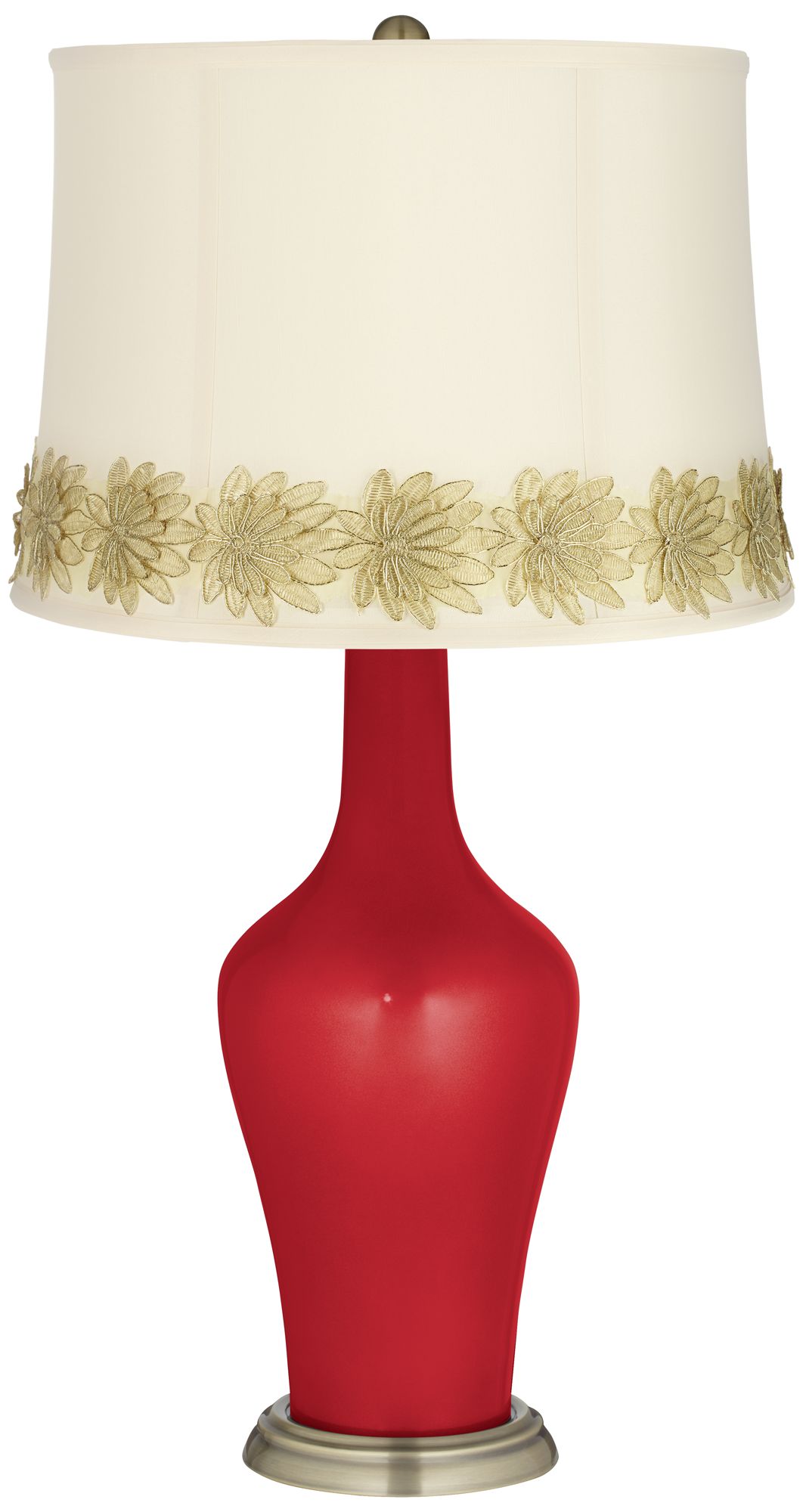 Sangria Metallic Anya Table Lamp with Flower Applique Trim