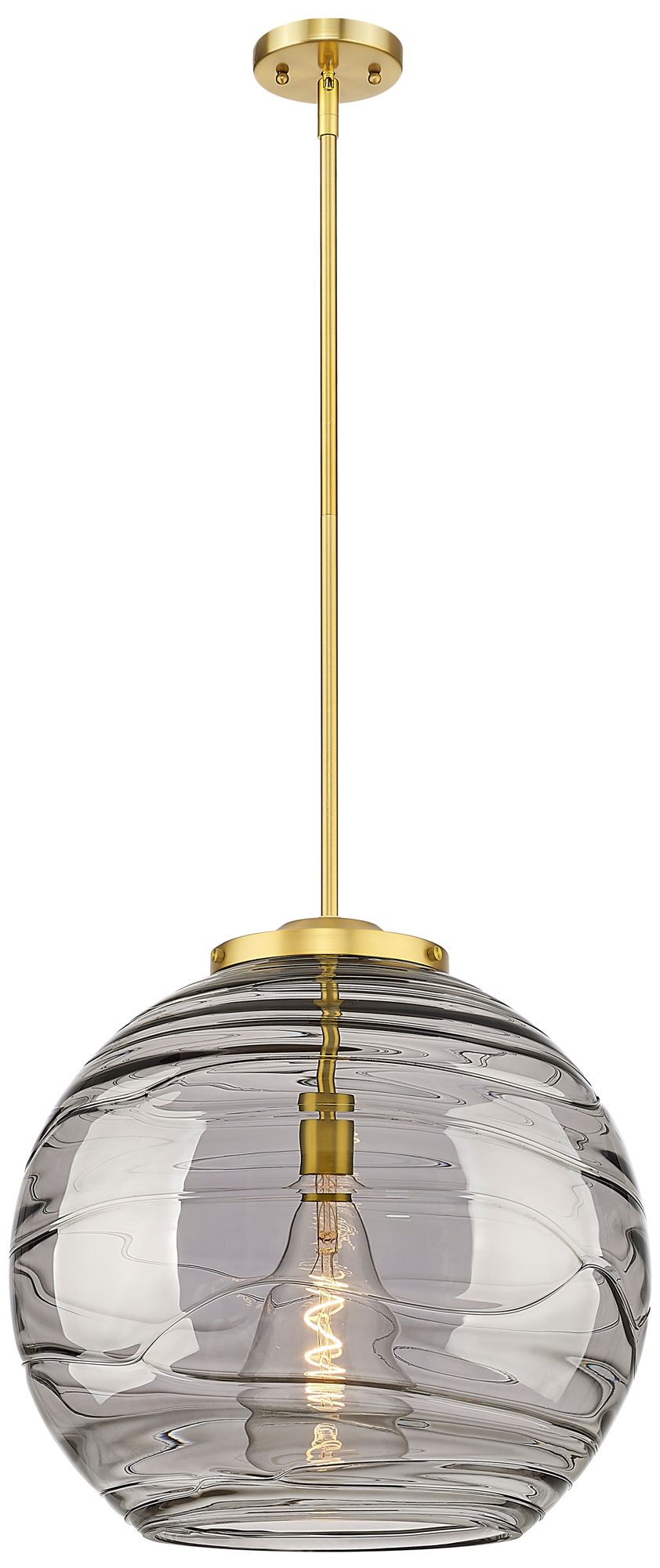 Franklin Athens 17.88"W Gold Stemmed Pendant w/ Smoke Swirl Shade