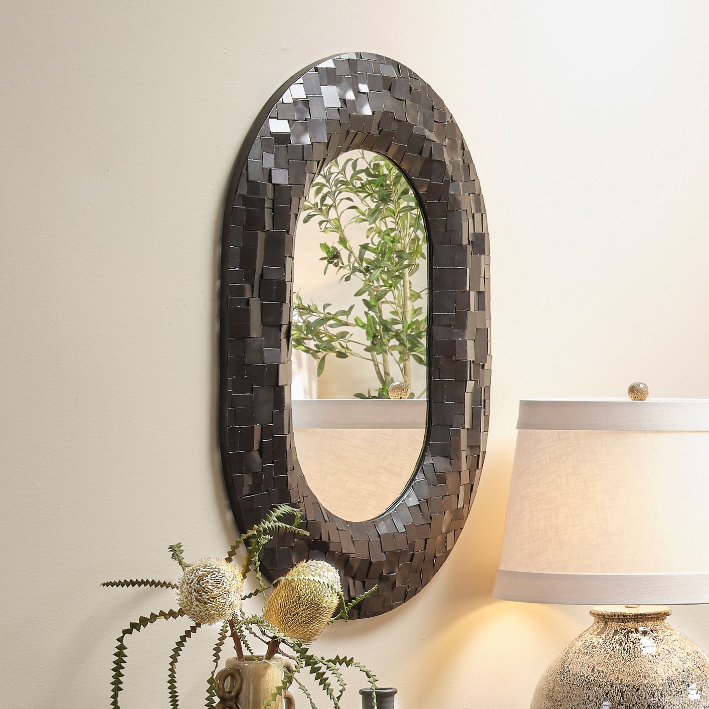 Jamie Young Enigma Black Iron 28" x 38" Oval Wall Mirror