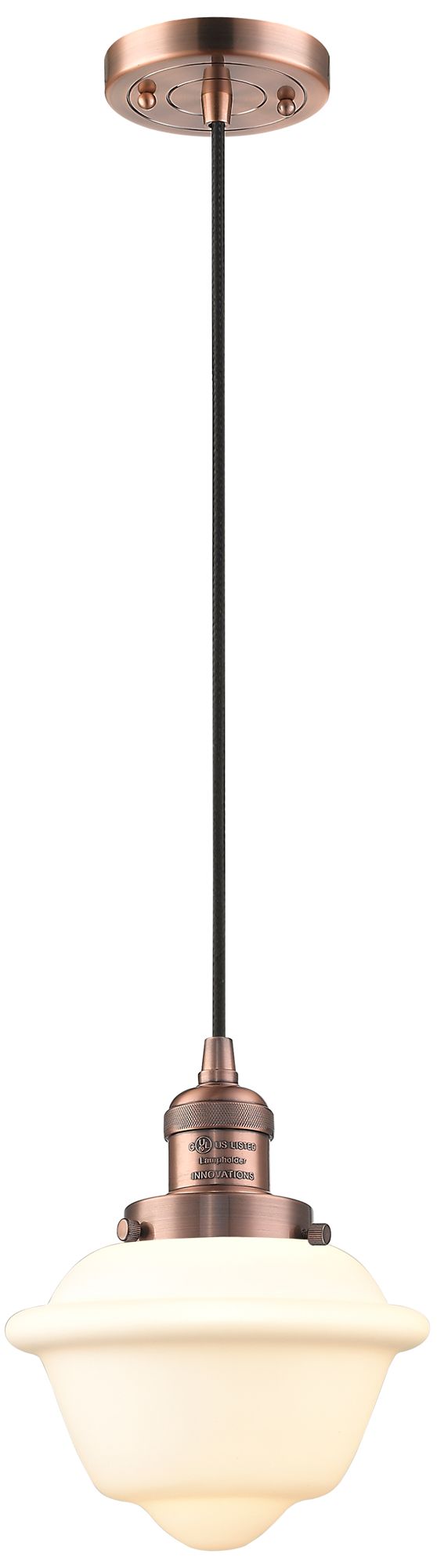 Franklin Restoration Oxford 8" Copper Corded Mini Pendant w/ White Sha
