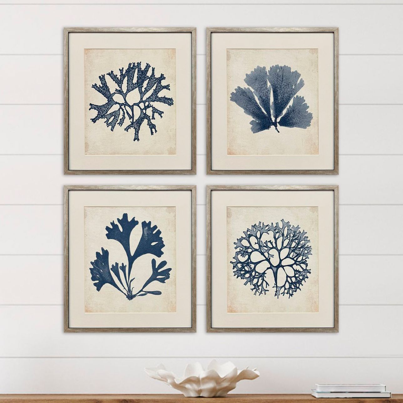 Indigo Sea Life 17"W x 19"H Coastal Framed Art Set of 4