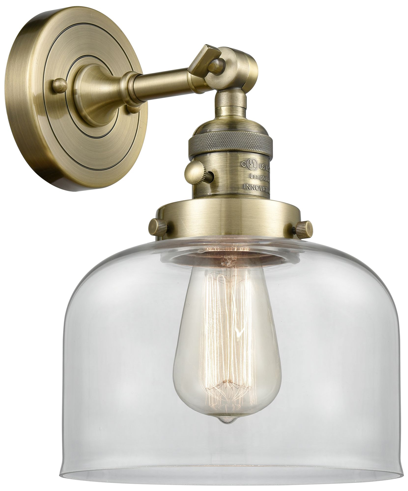 Bell 8" Antique Brass Sconce w/ Clear Shade