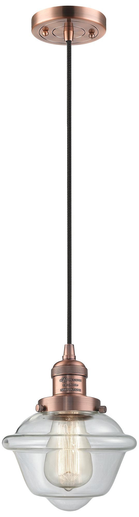 Franklin Restoration Oxford 8" Copper Corded Mini Pendant w/ Clear Sha